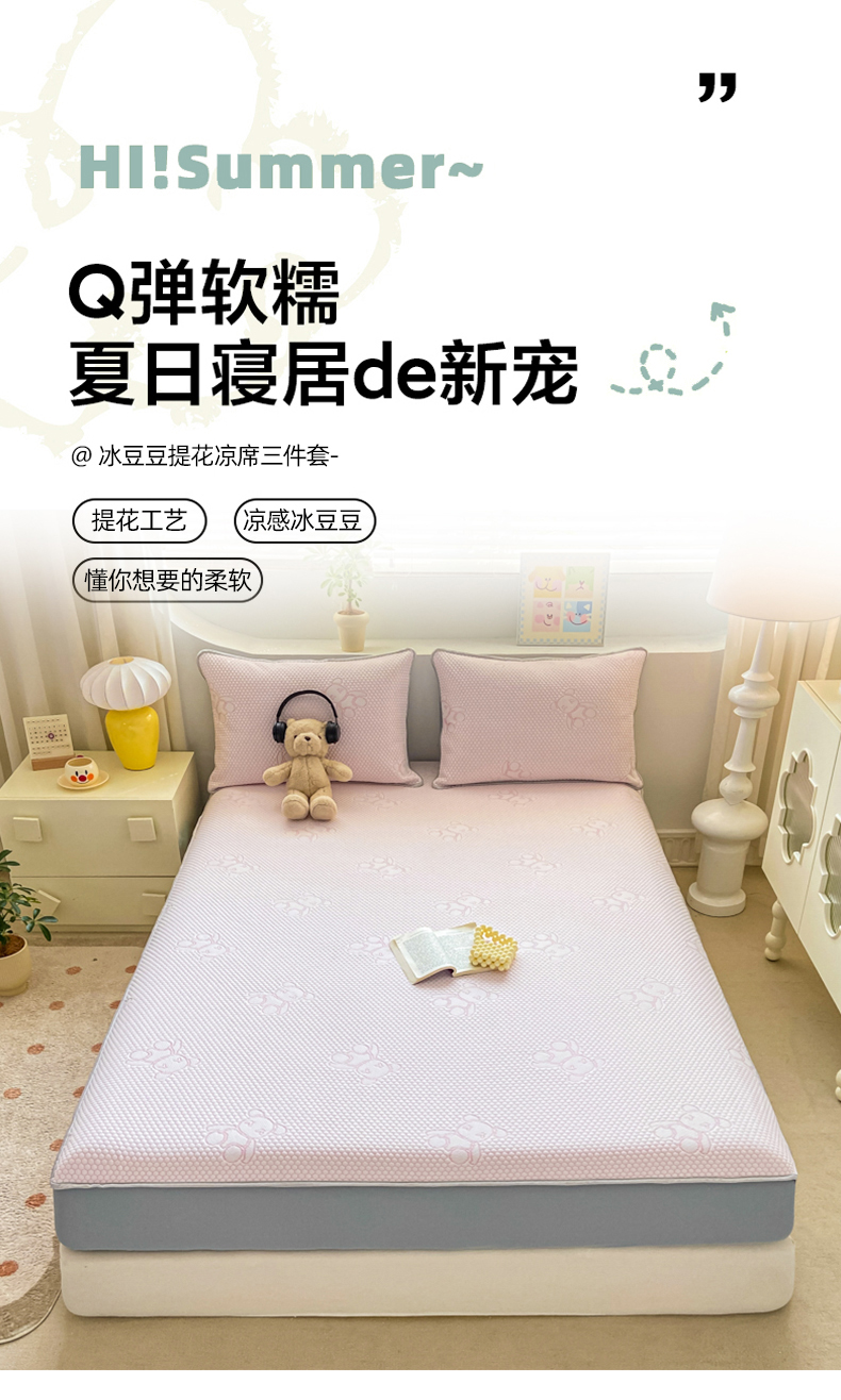 (总)蝶帕 2025新款冰豆豆提花凉席三件套