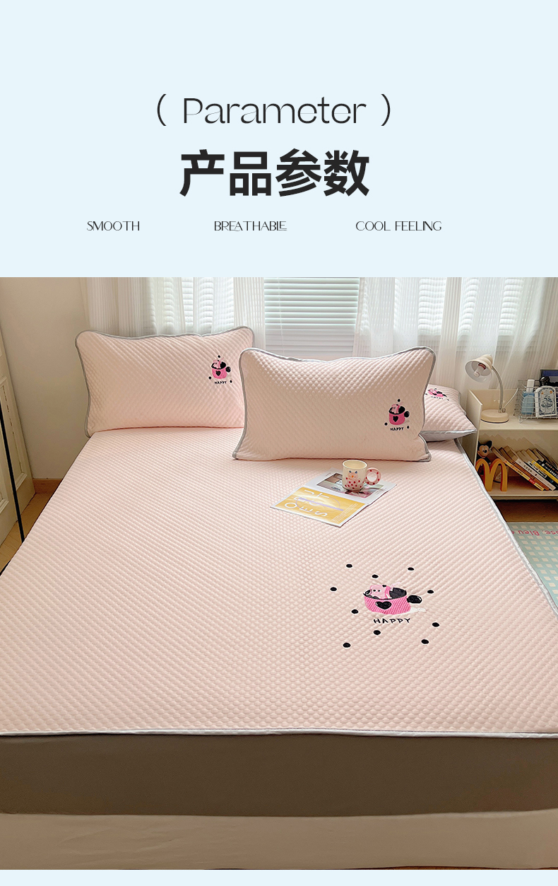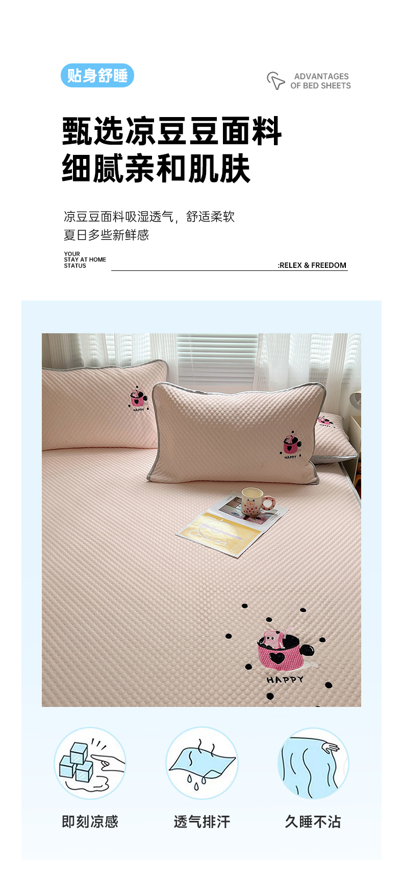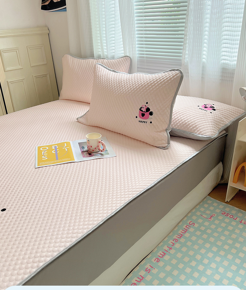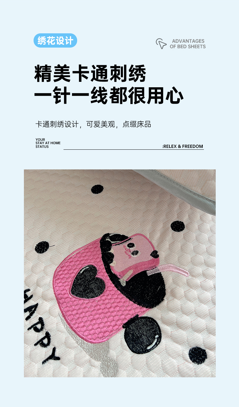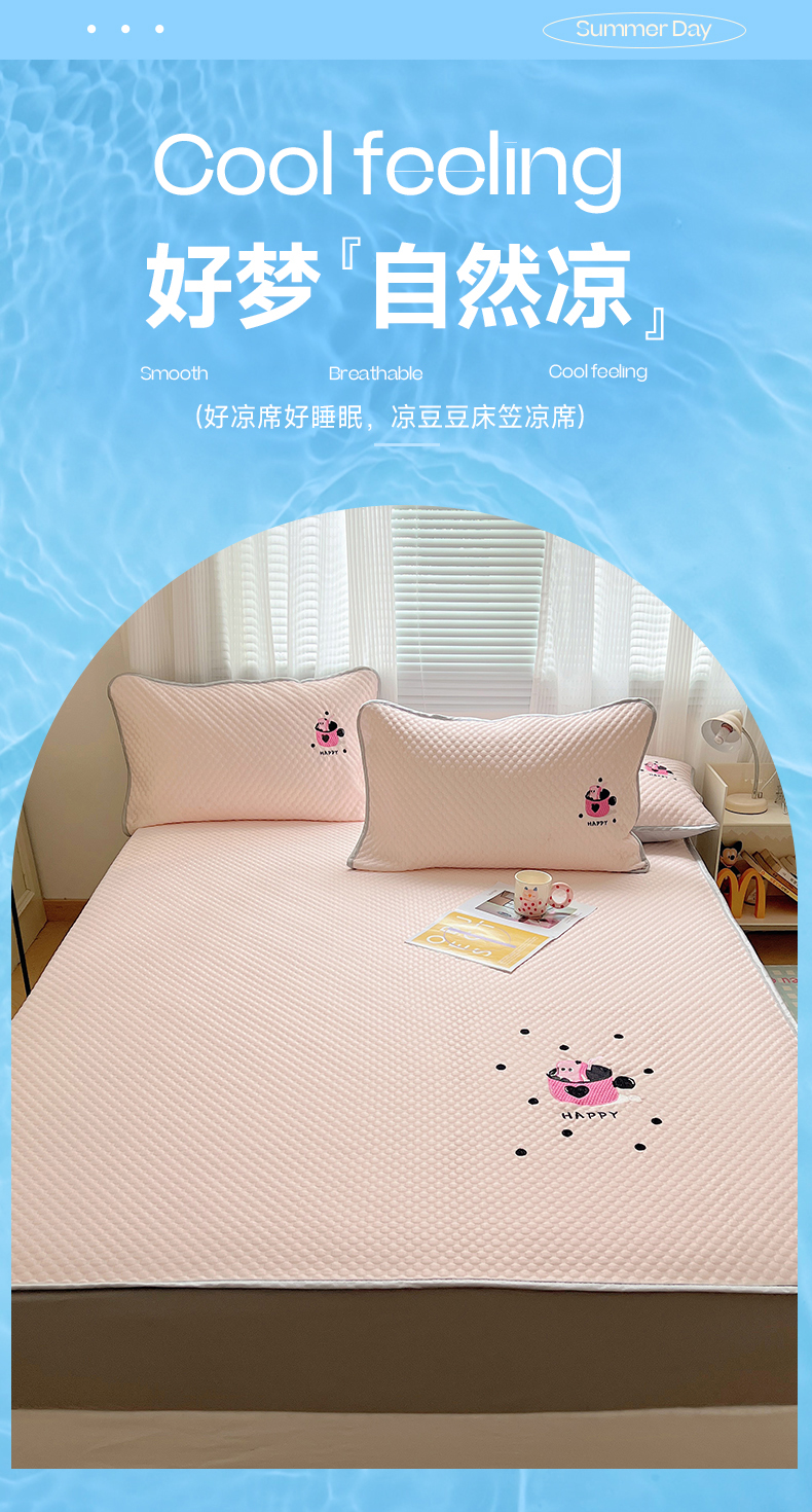 红嘴企鹅 2025新款凉豆豆绣花床笠凉席 泡泡奶-粉