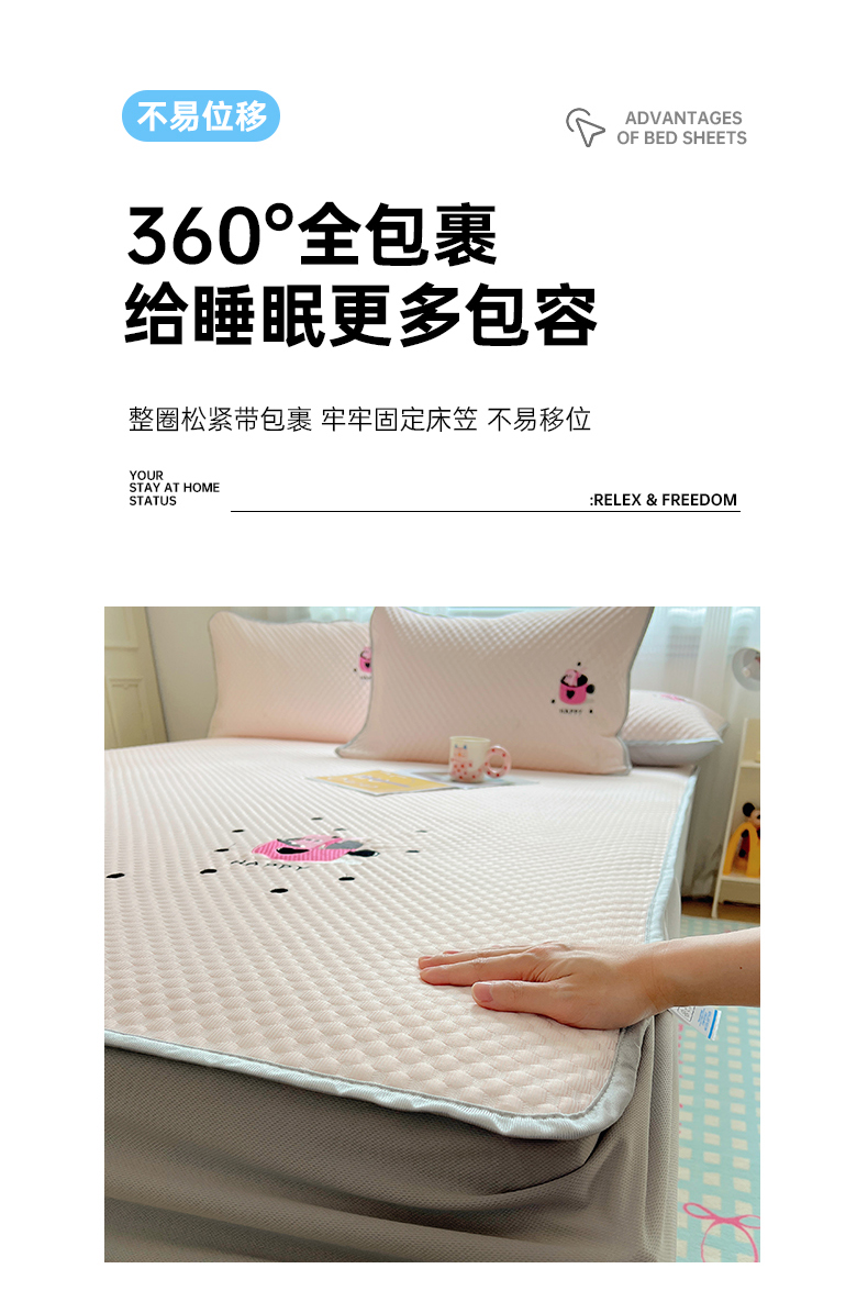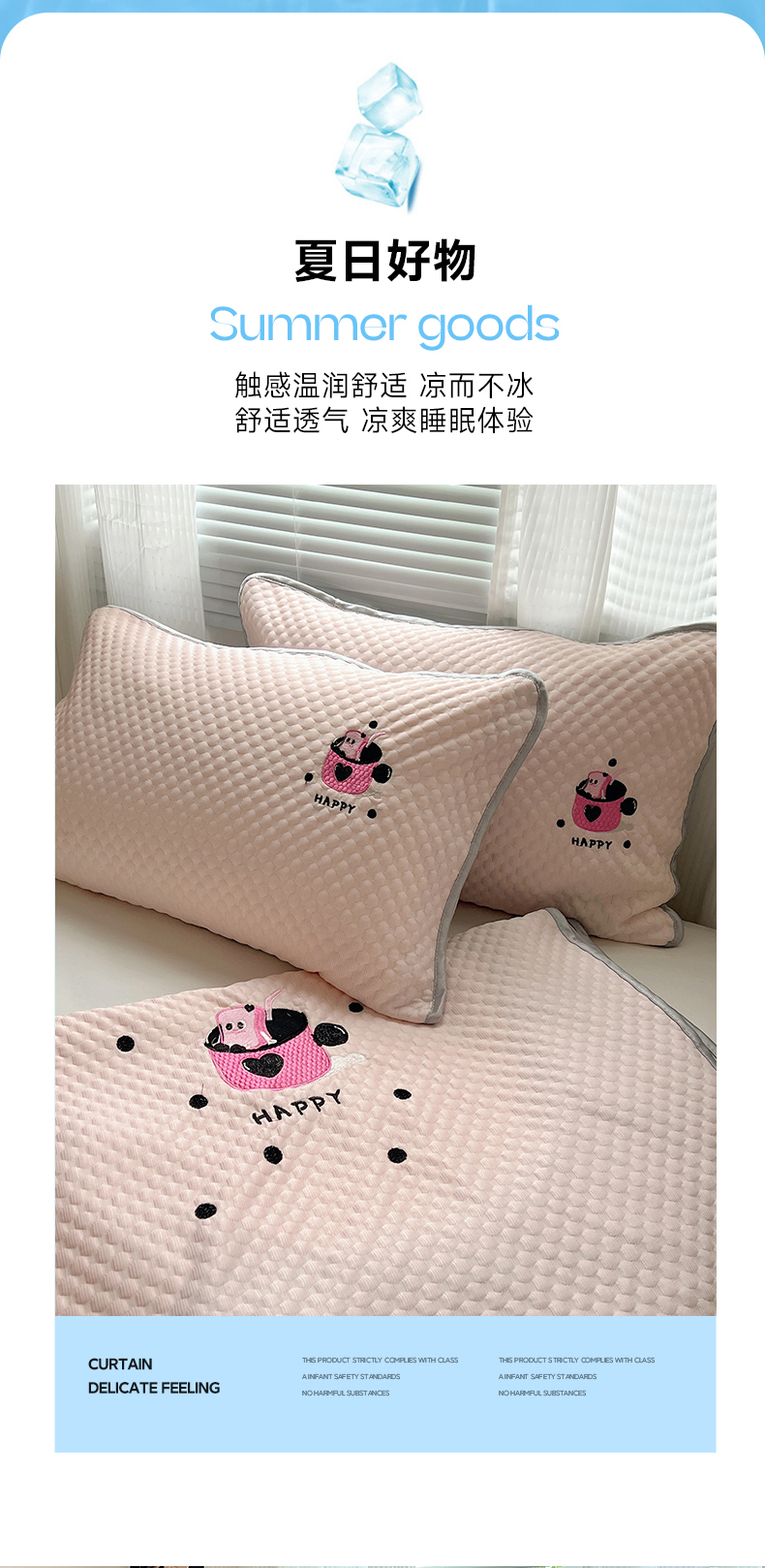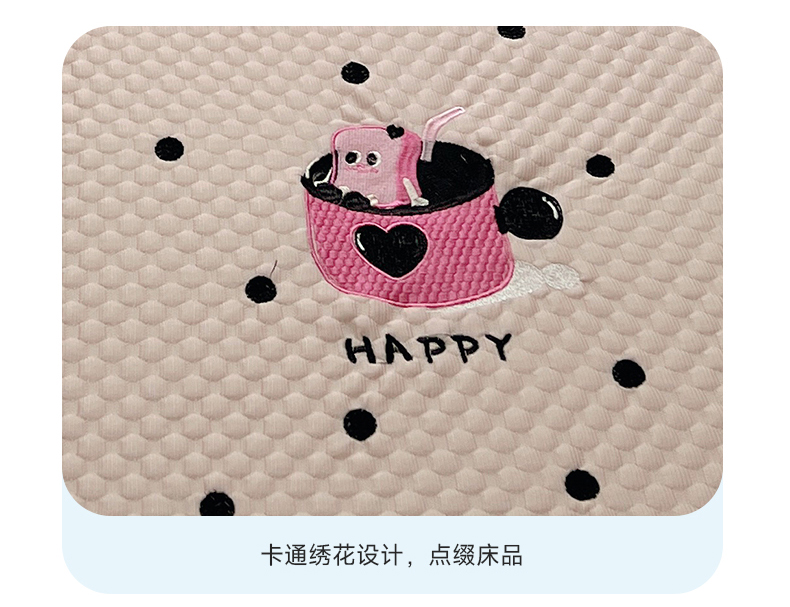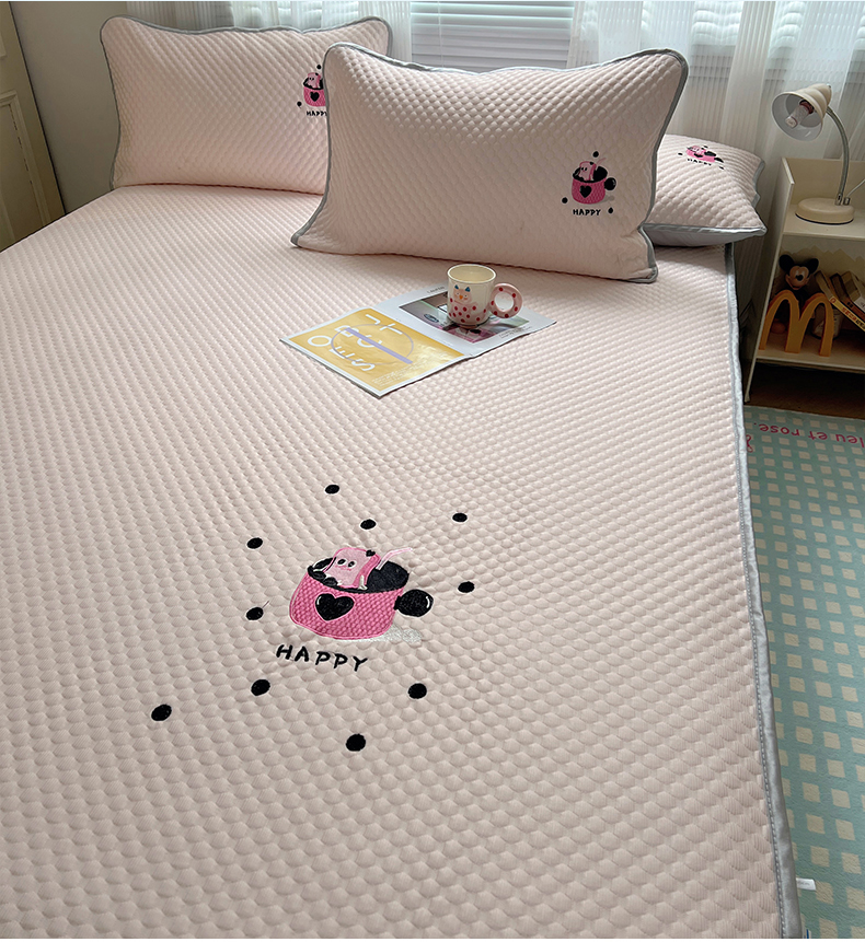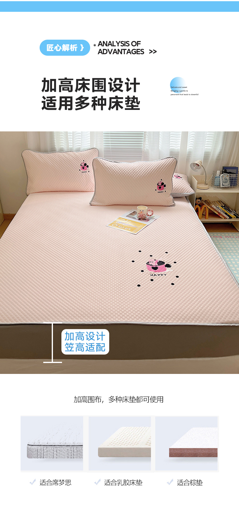 红嘴企鹅 2025新款凉豆豆绣花床笠凉席 泡泡奶-粉