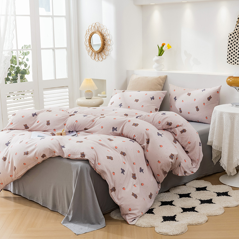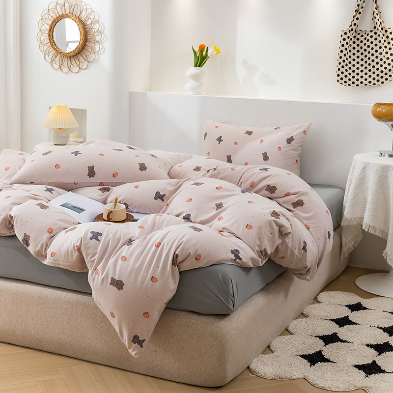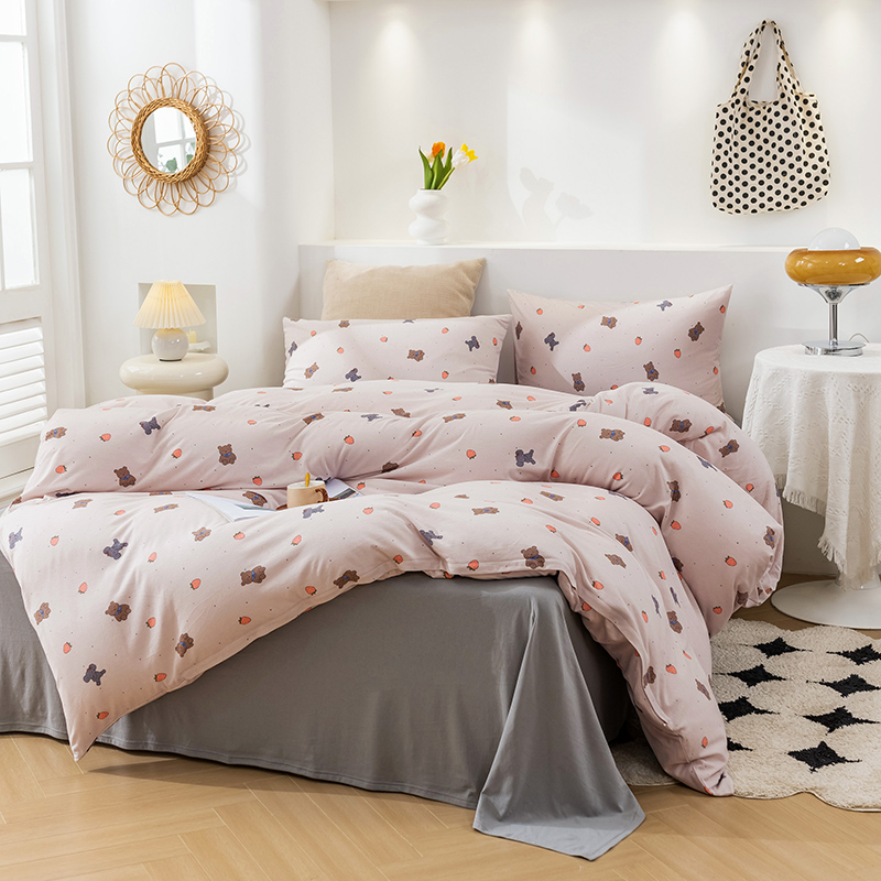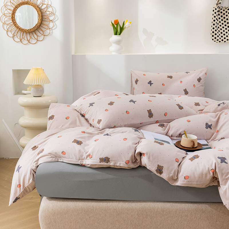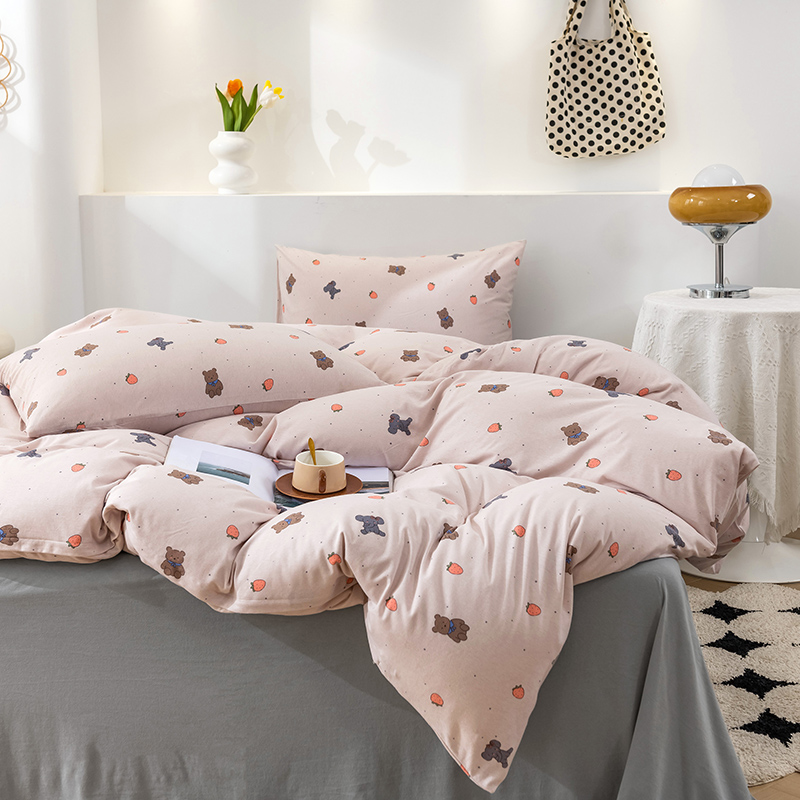 商品名称:优姿家纺2024新款A类全棉针织棉系列四件套 草莓熊-粉