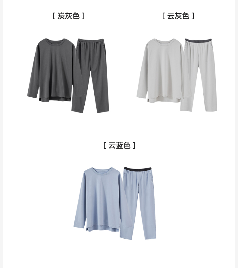 商品名称:EH 2024新款全棉男女情侣款家居服-男女款圆领 男款云蓝色