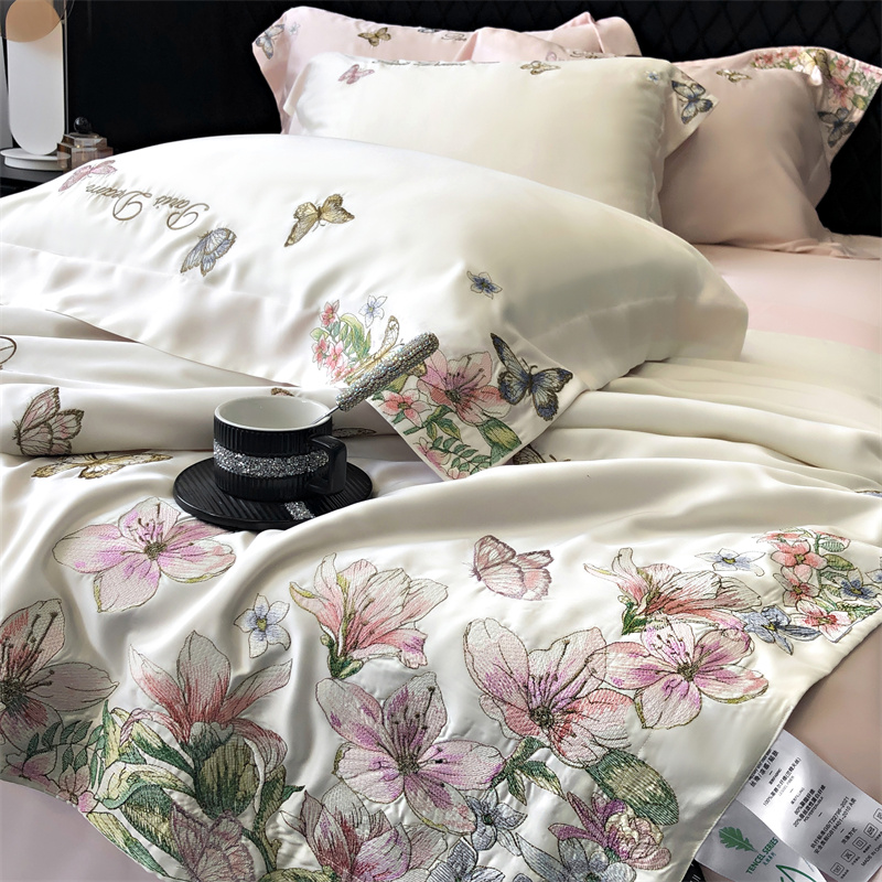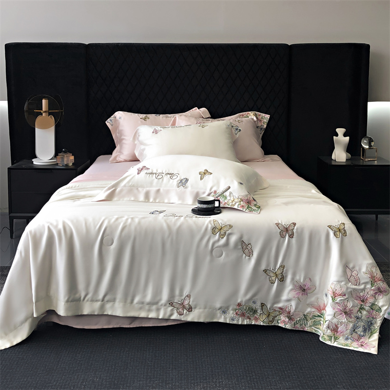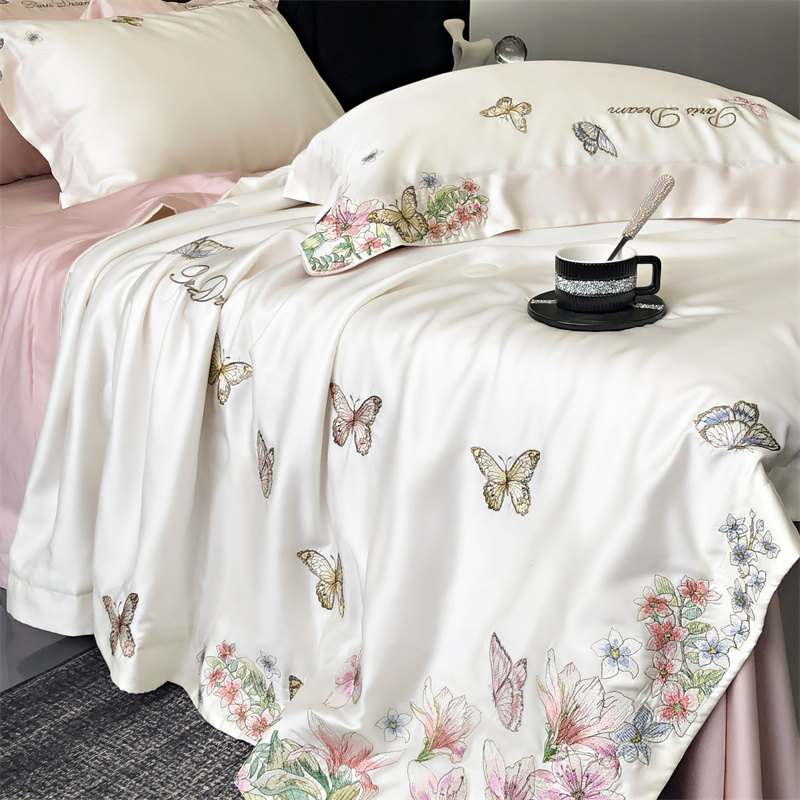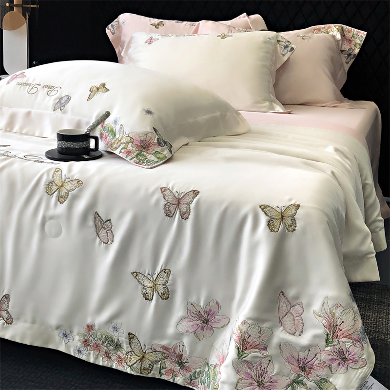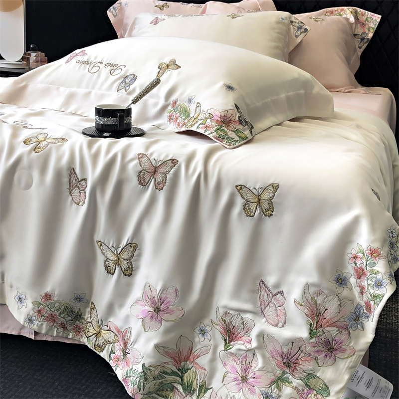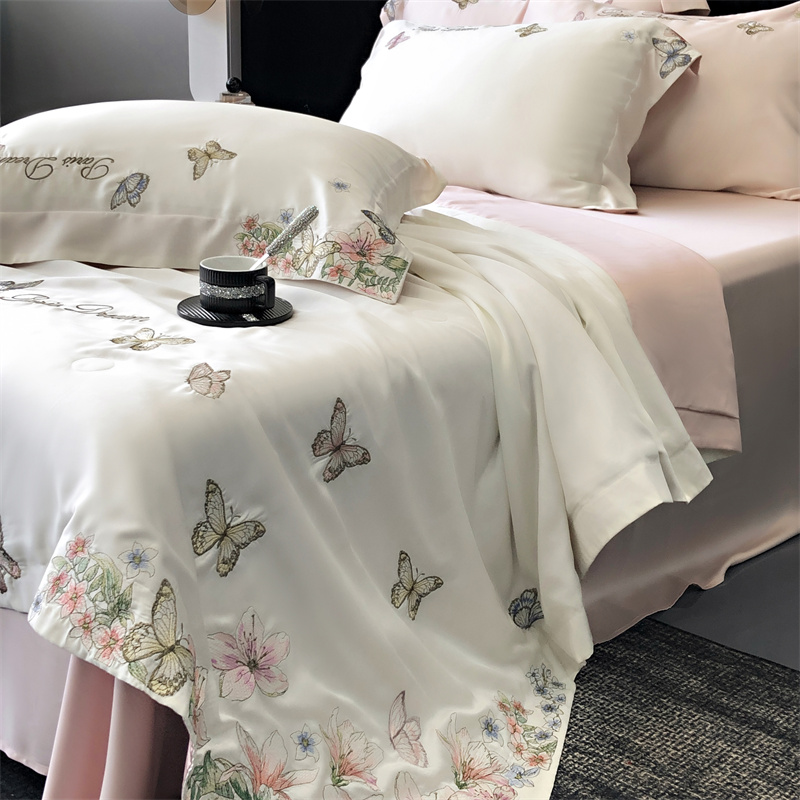 (总)馨蕊家居 2024新款80s兰精天丝刺绣夏被四件套-蝶舞花间