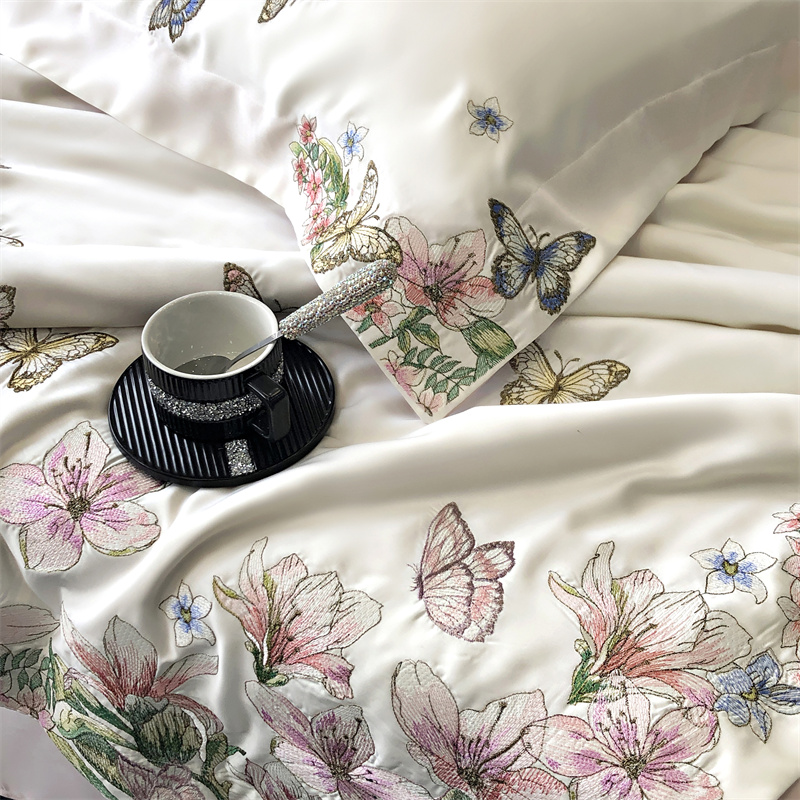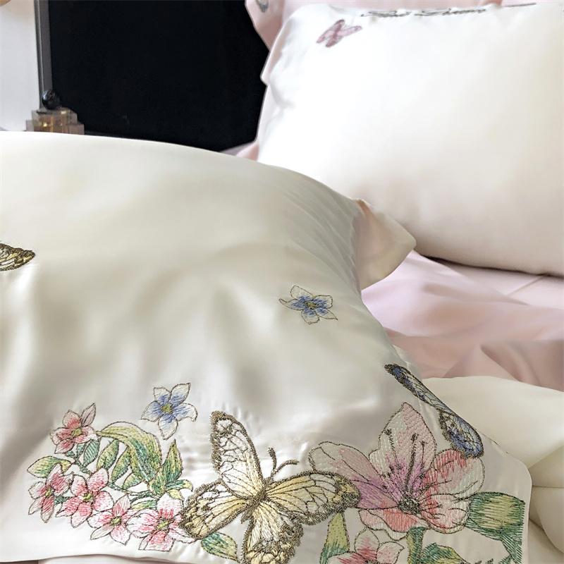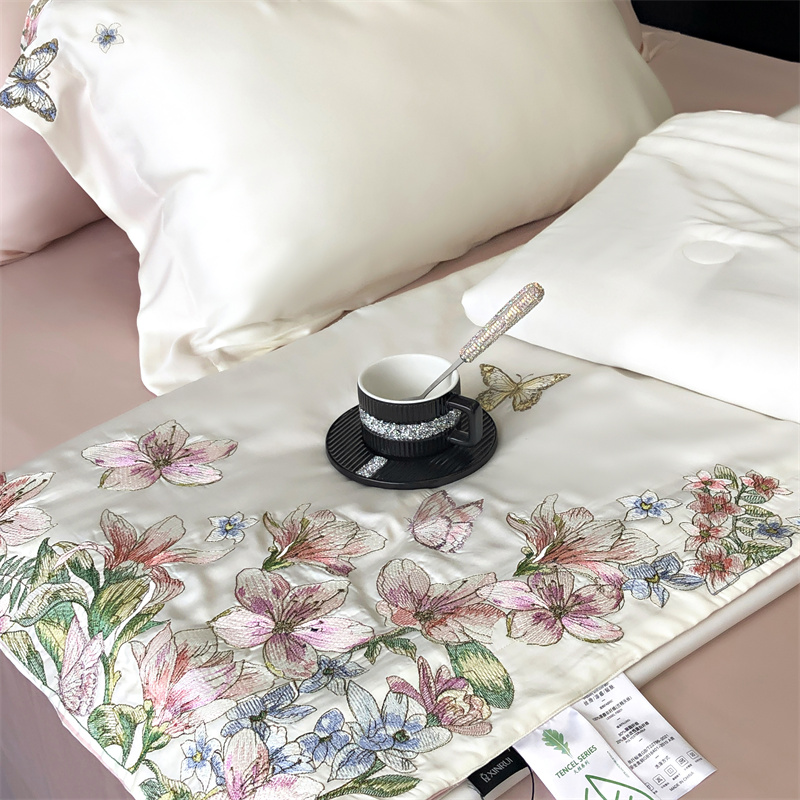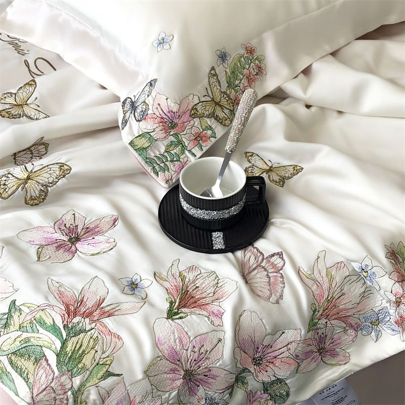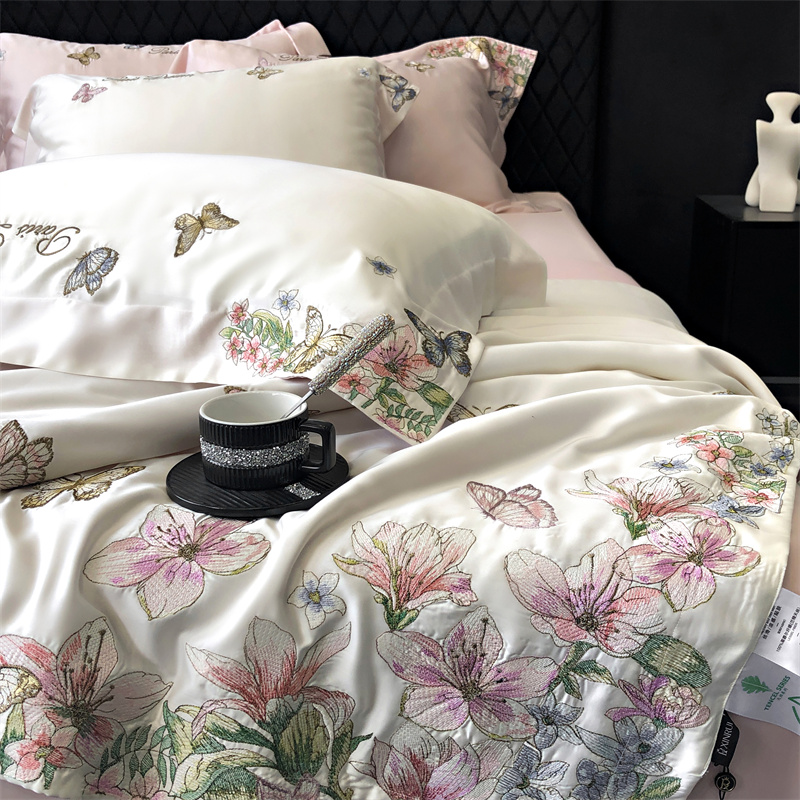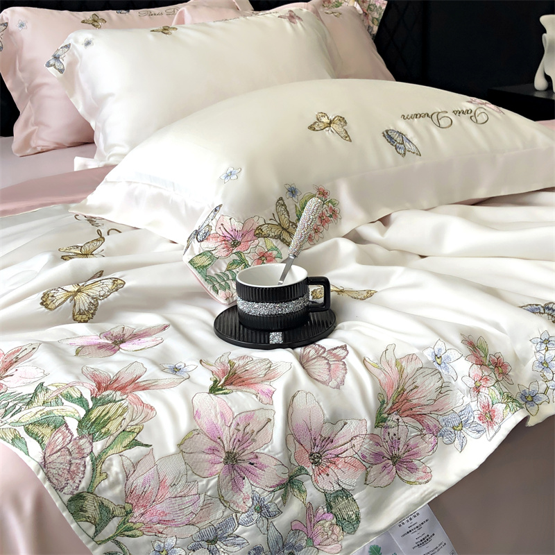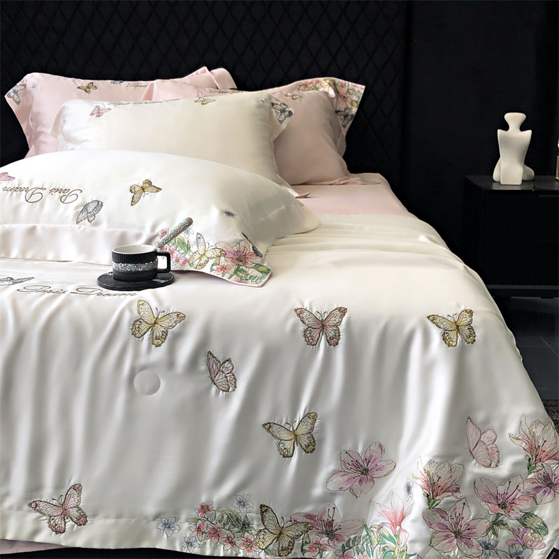 (总)馨蕊家居 2024新款80s兰精天丝刺绣夏被四件套-蝶舞花间