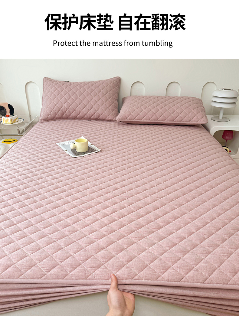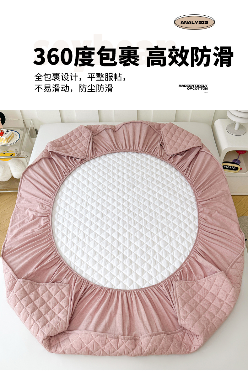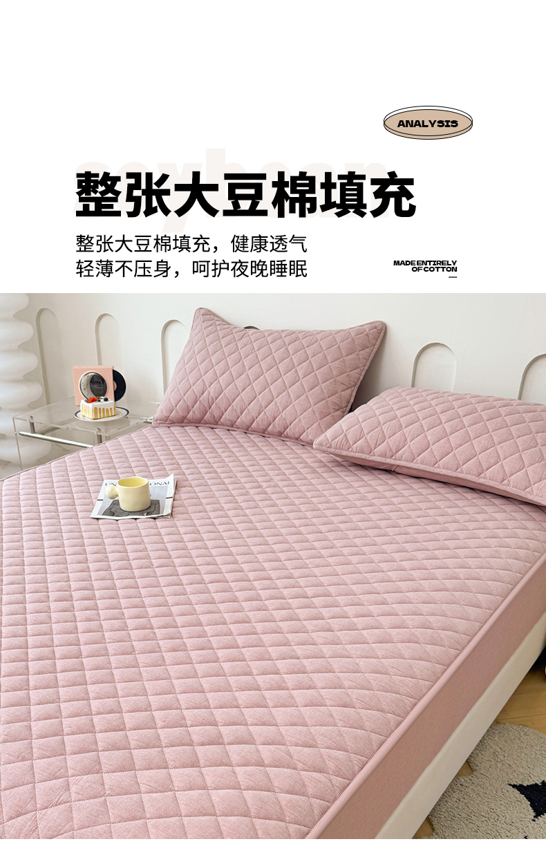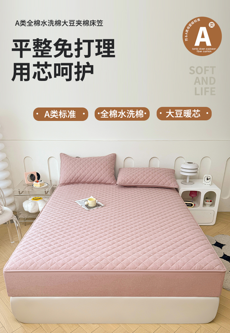 糯米猪家纺 2024新款全棉水洗棉大豆夹棉床笠 豆沙粉