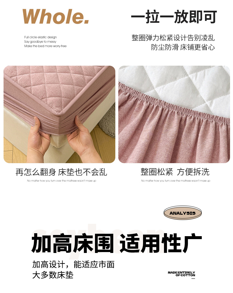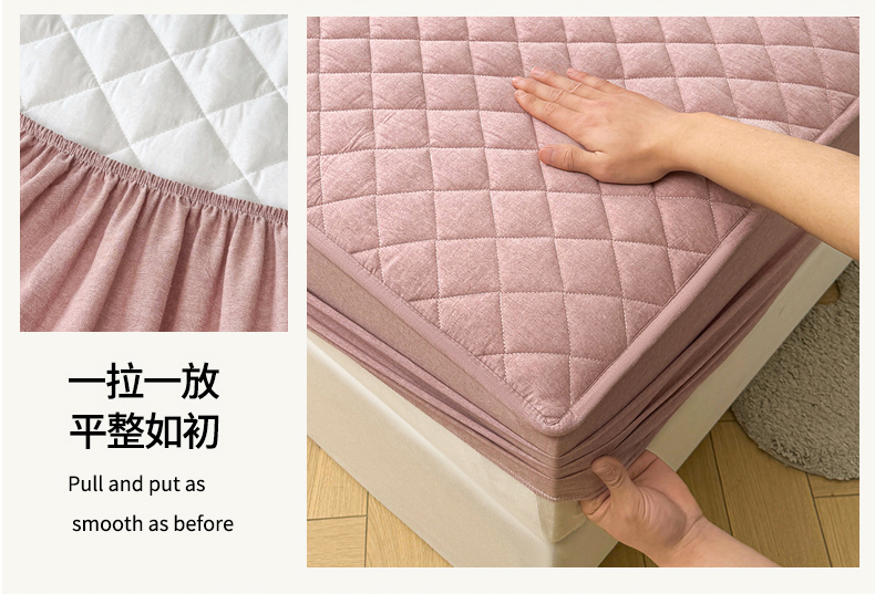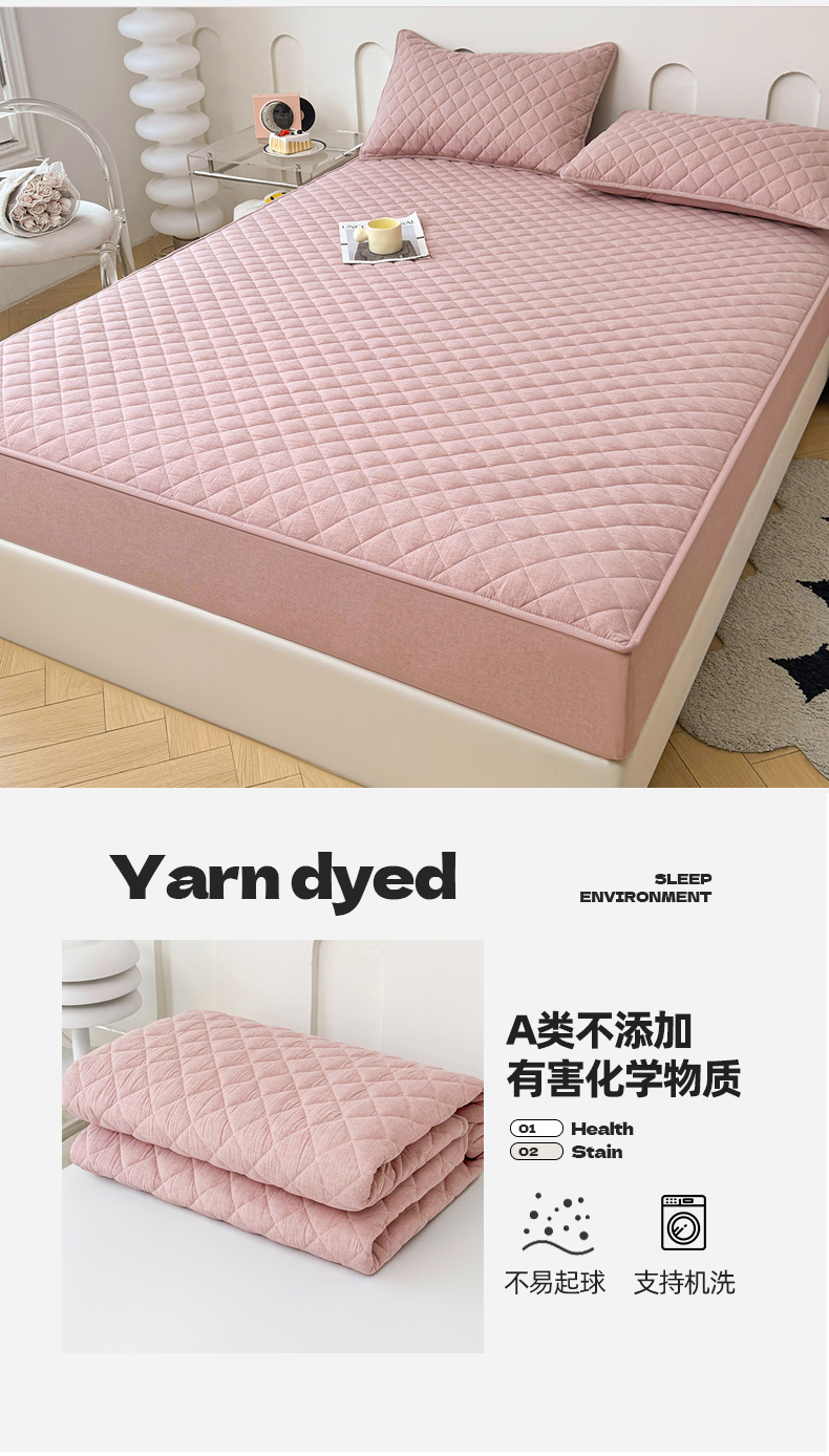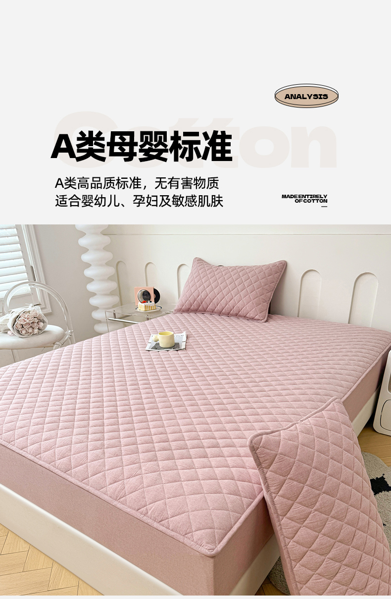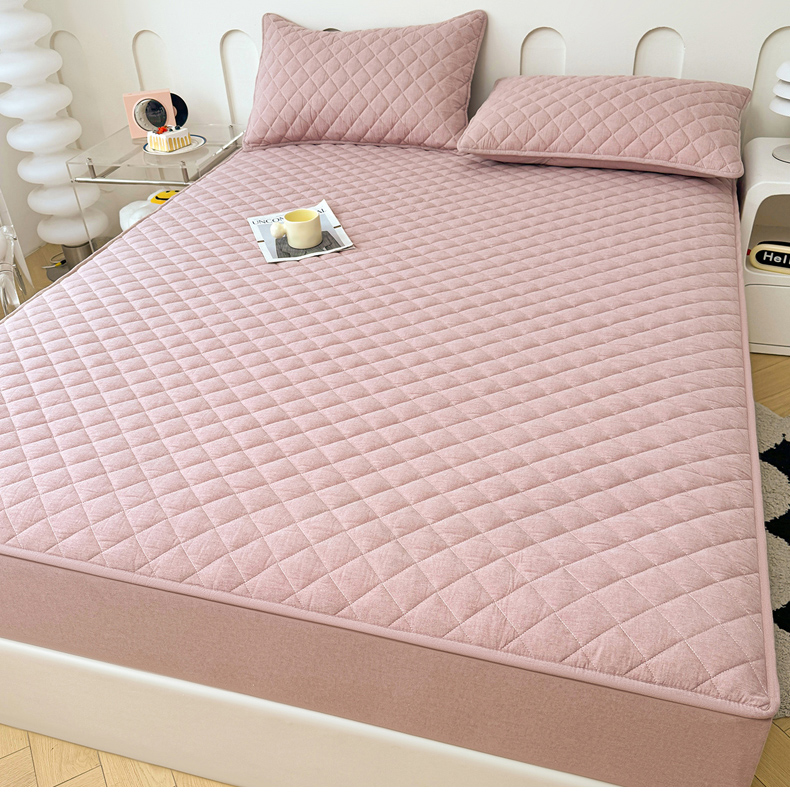 糯米猪家纺 2024新款全棉水洗棉大豆夹棉床笠 豆沙粉