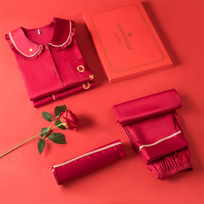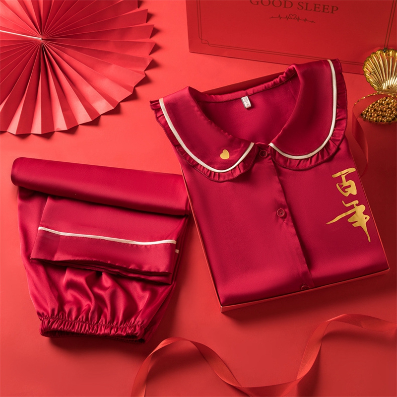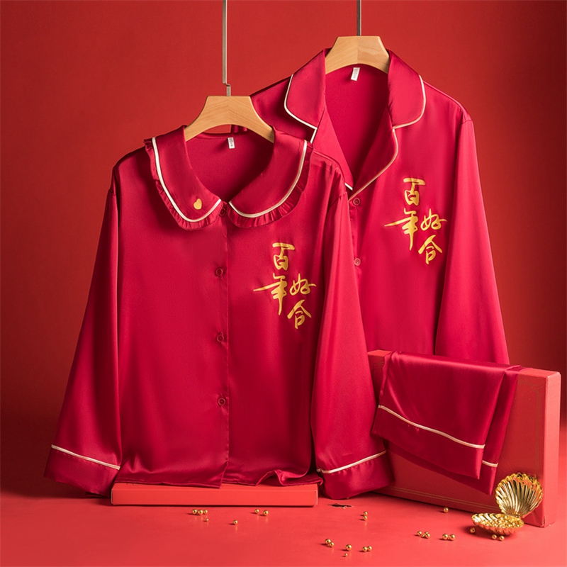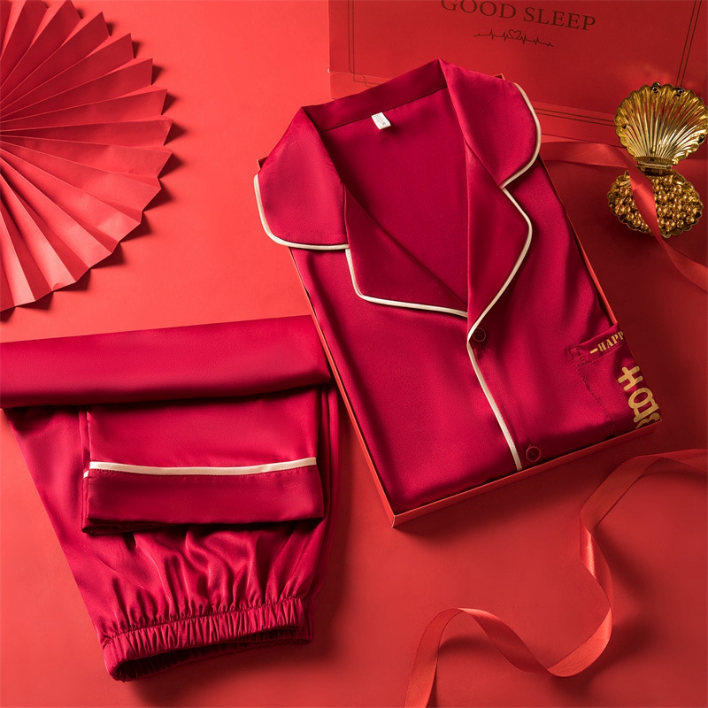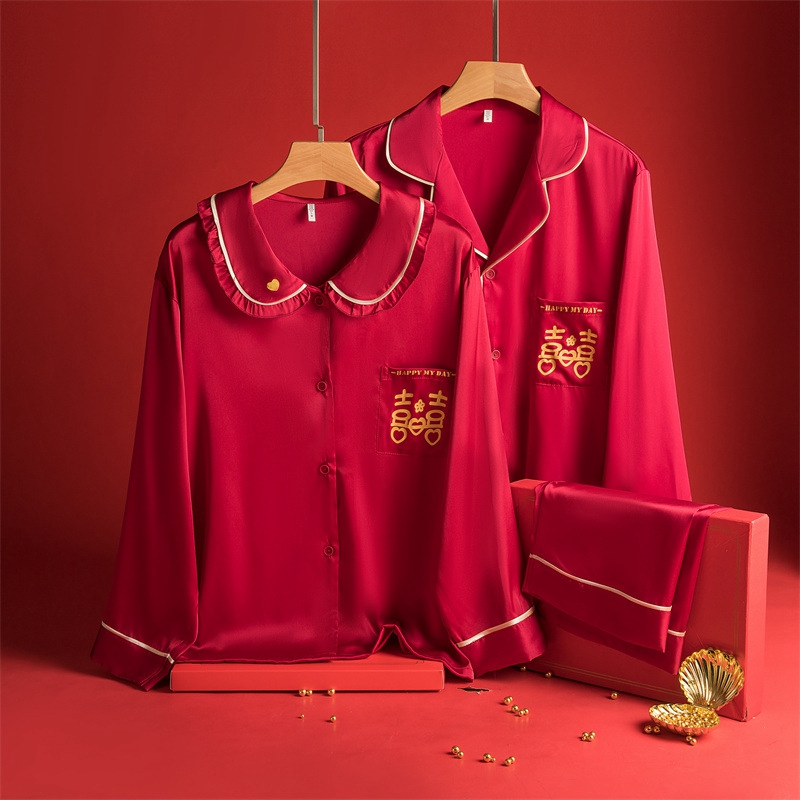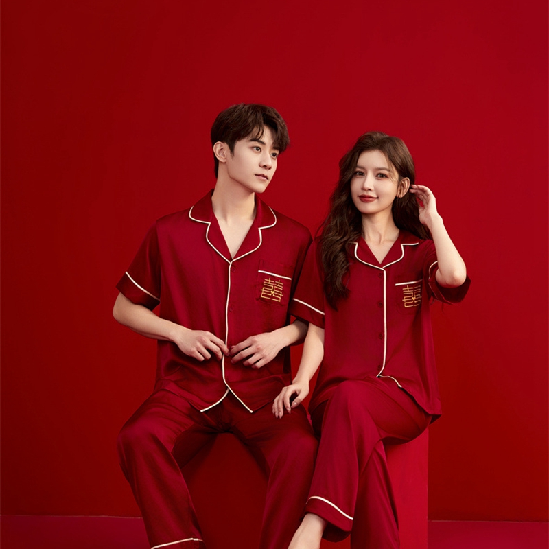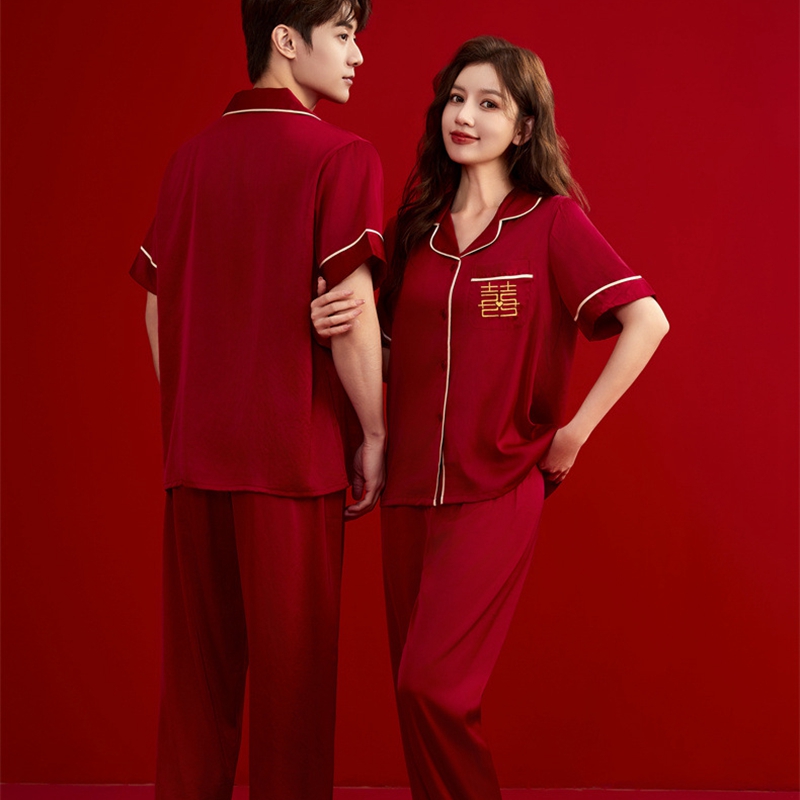 (总)洛兰沙家居馆【只代发】【只代发】 2024新款婚庆冰丝睡衣 莫代尔情侣睡衣男女款春夏季新款简约青少年休闲家居服