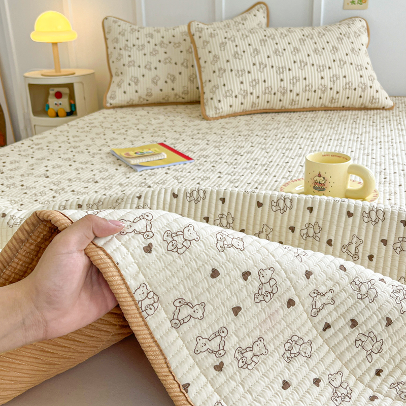 梵朴 2024新款纯棉印花夹棉床盖 贝贝熊