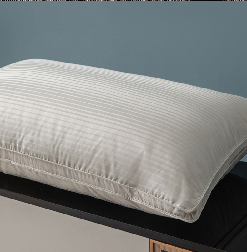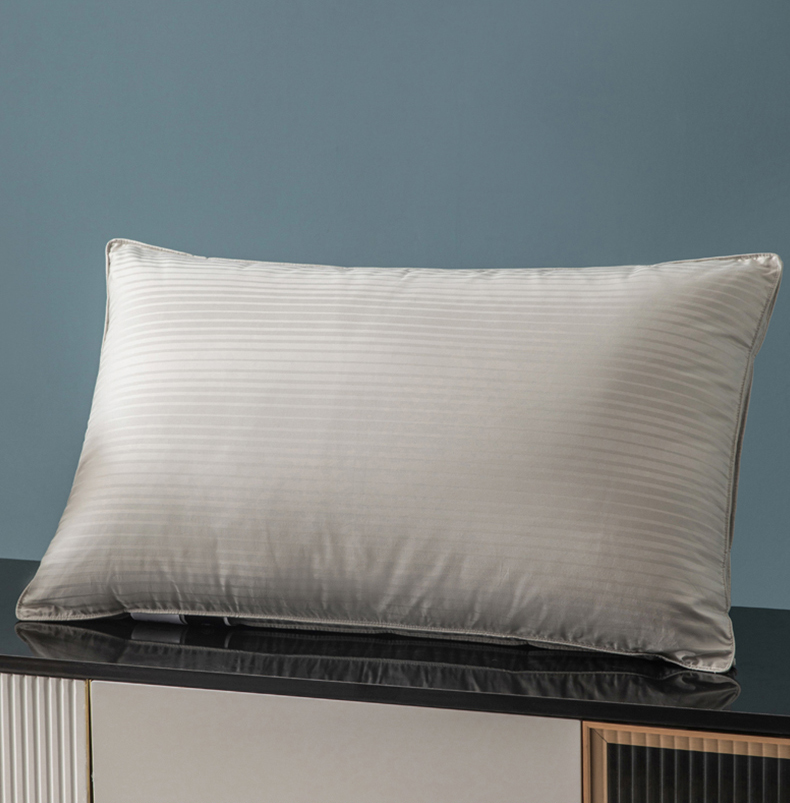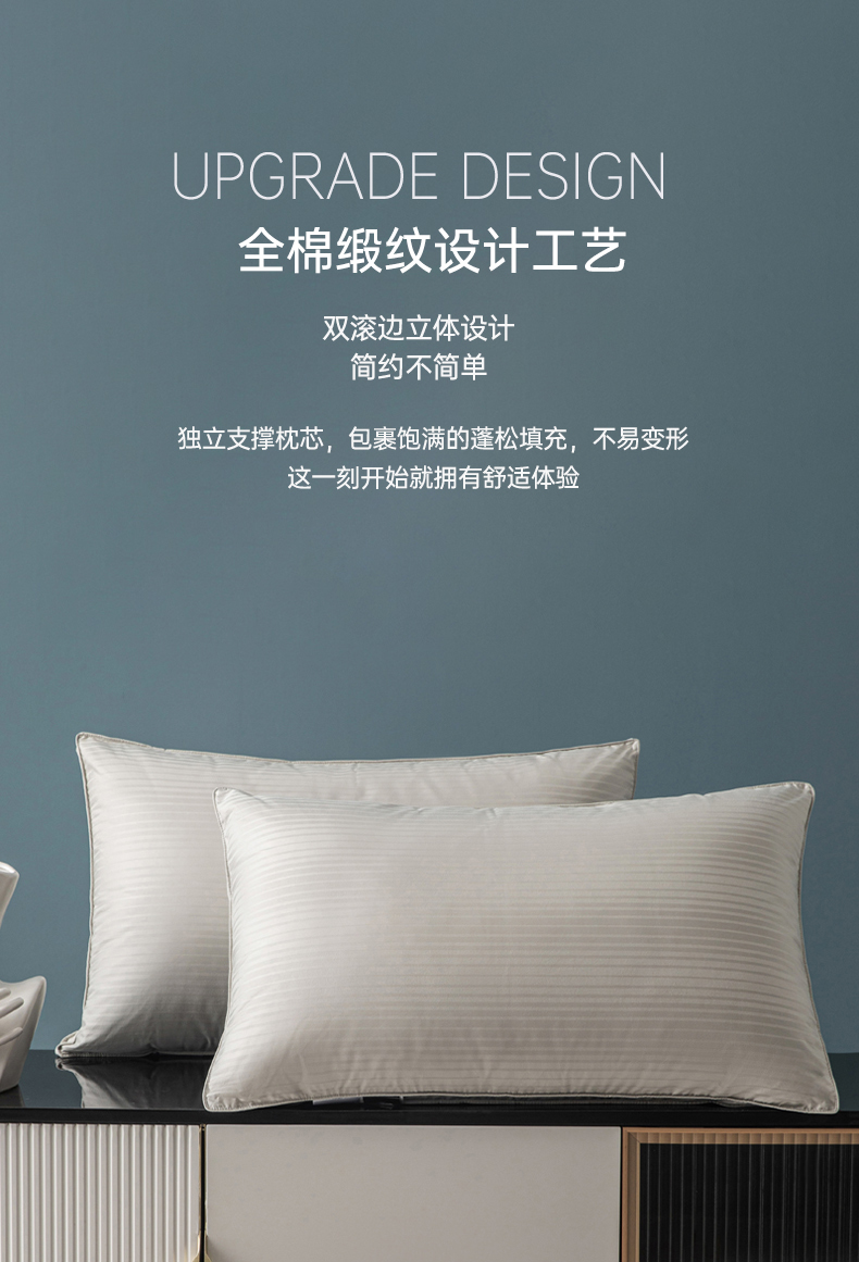 当前位置: 91家纺网 > 商品网购 > 枕头/枕芯/保健枕/颈椎枕 > 普通枕芯 > 太阳羽家纺 2025全棉缎条枕三层高端枕立体缎纹枕 缎条银灰色低枕