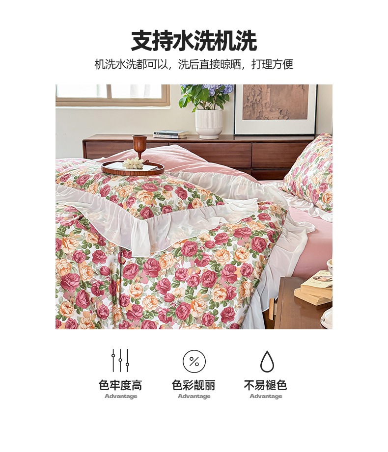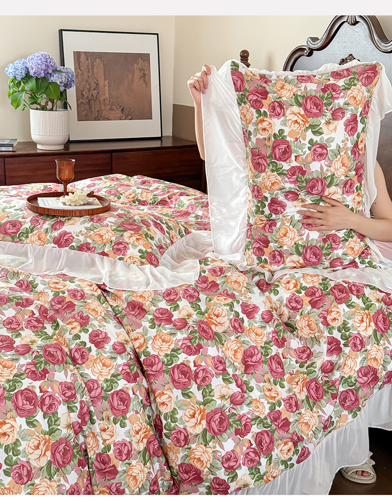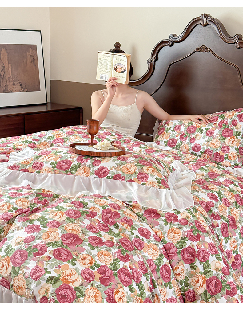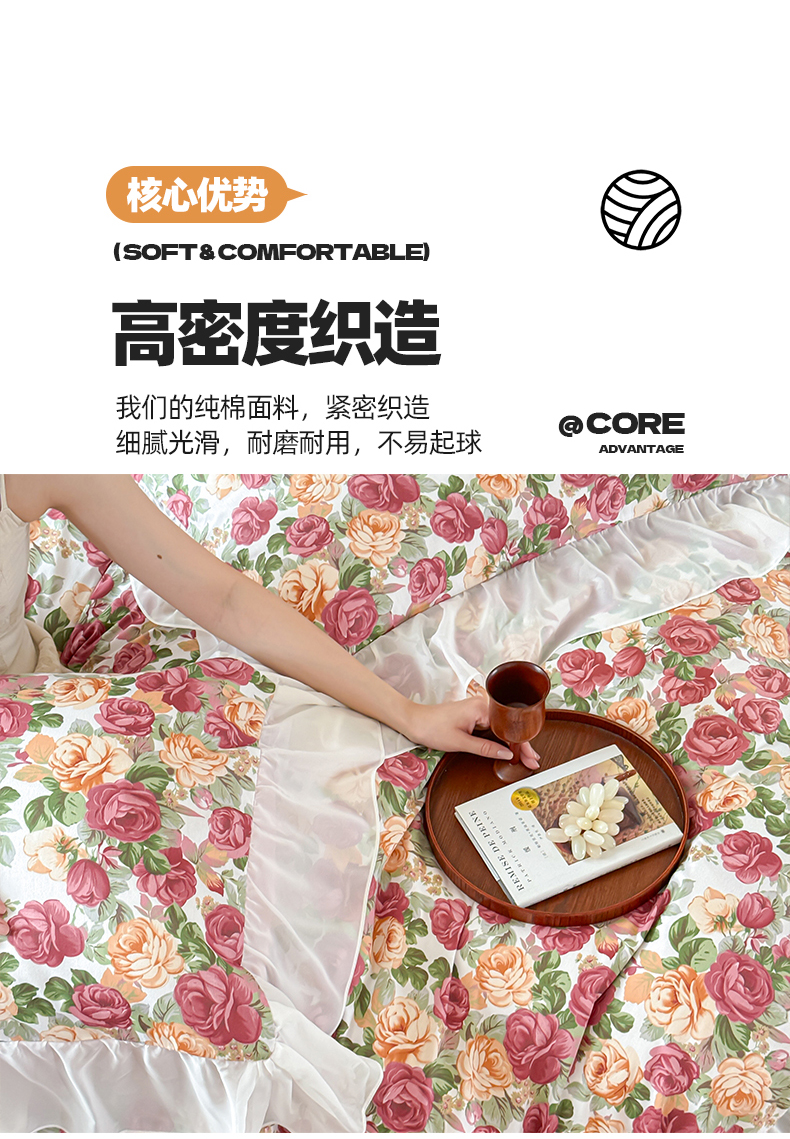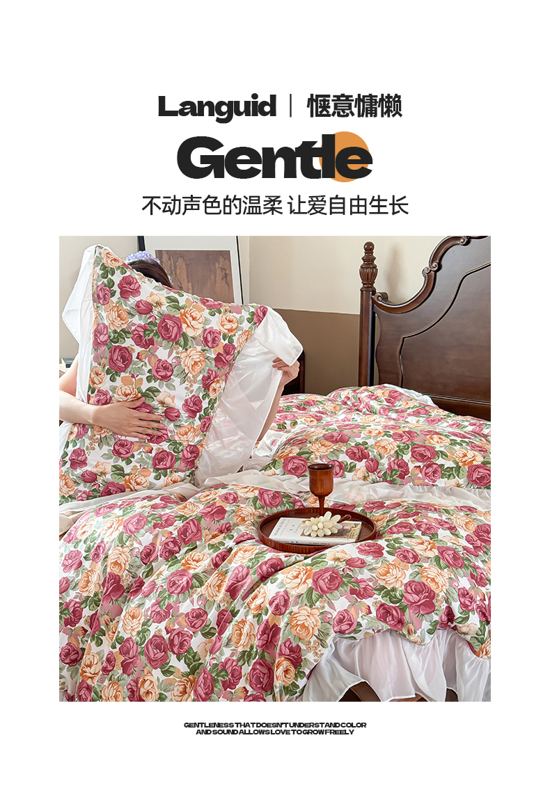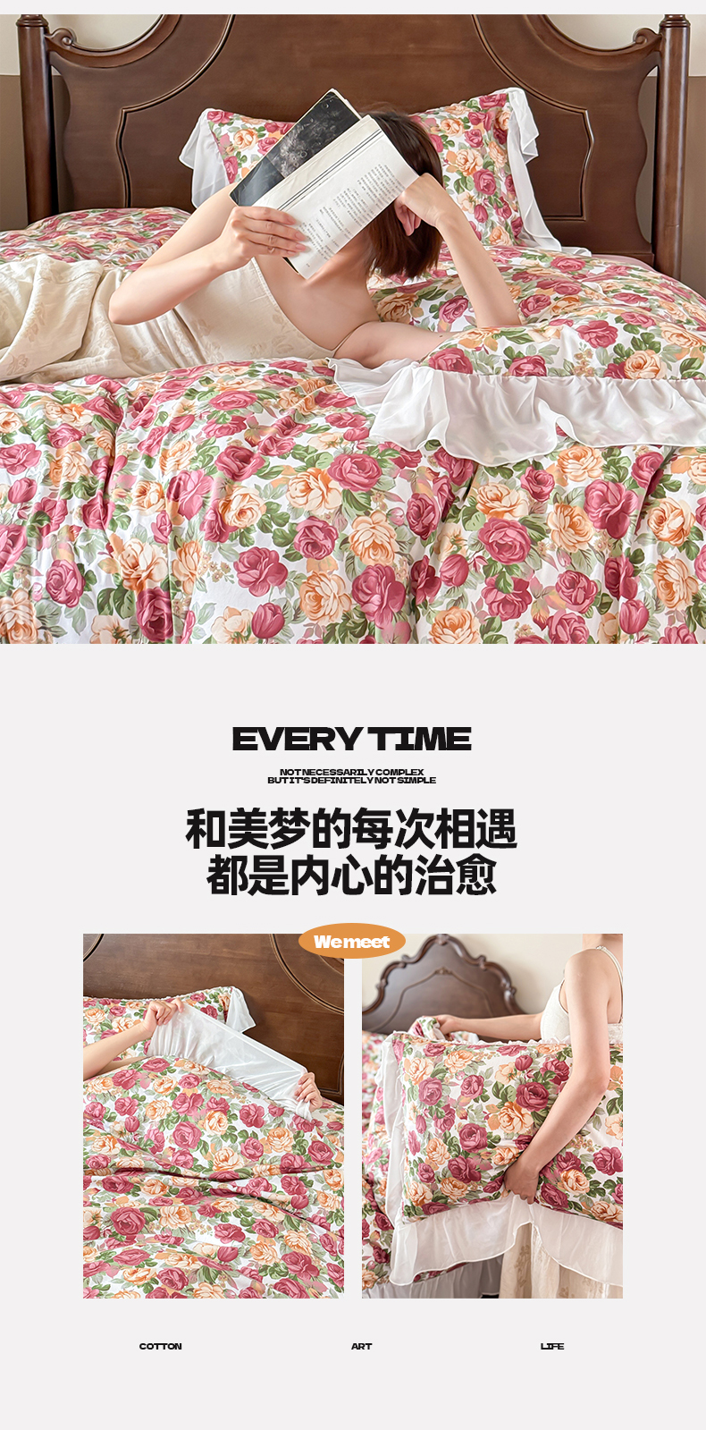 商品名称:窝米 2024夏季纯棉法式复古雪纺大花边四件套系列第二批 小玫瑰花边款