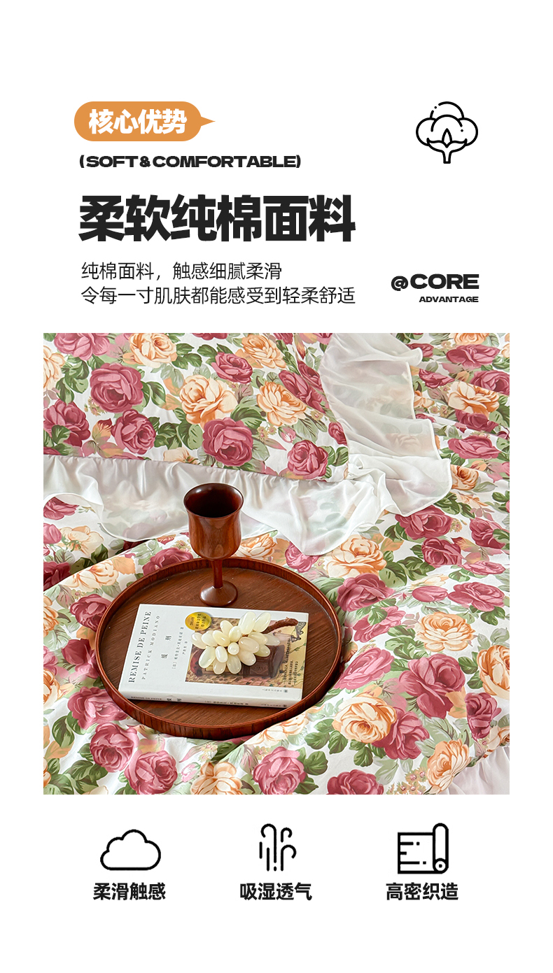 (总)窝米 2025新款全棉纯棉双层纱大版印花花卉四件套-第一组,赫美,绿野香,弥初,瑞优,云缦