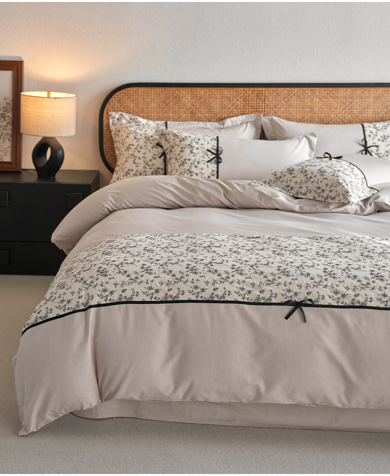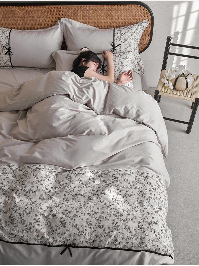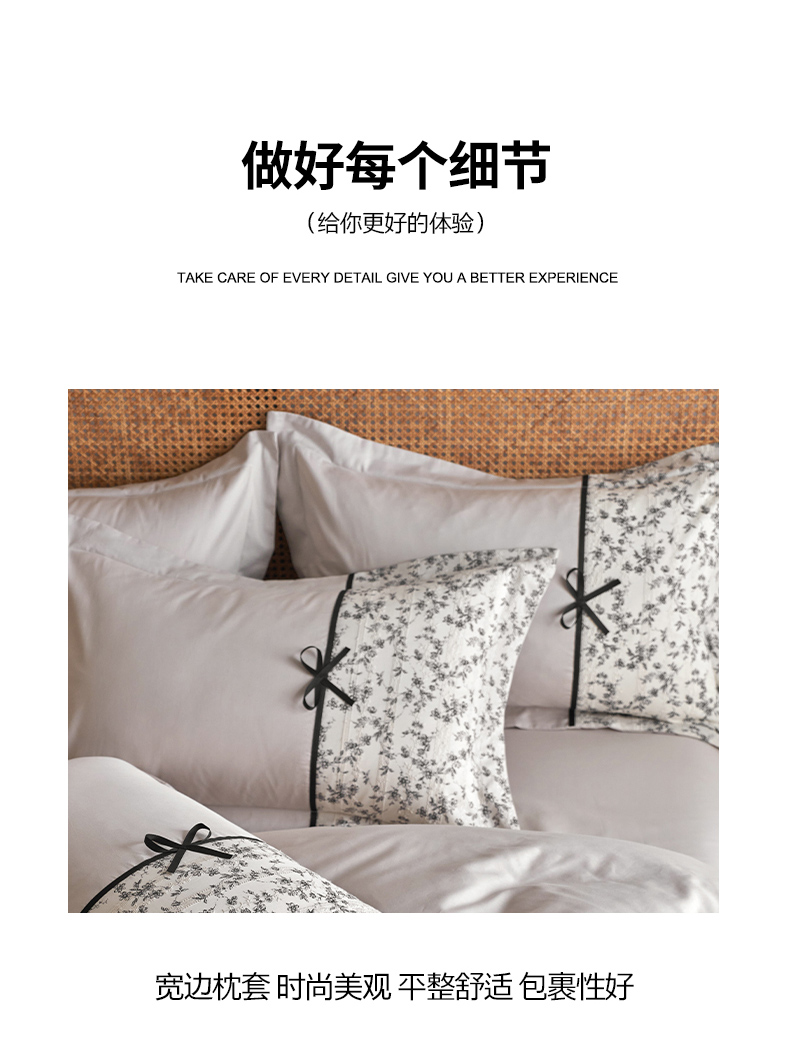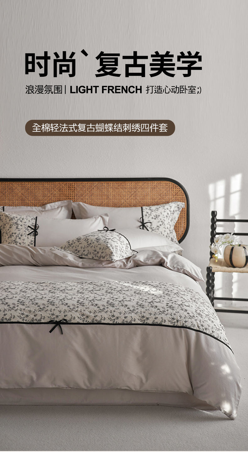 商品名称:2024新款全棉轻法式复古蝴蝶结刺绣工艺款四件套 奈妃-高级灰