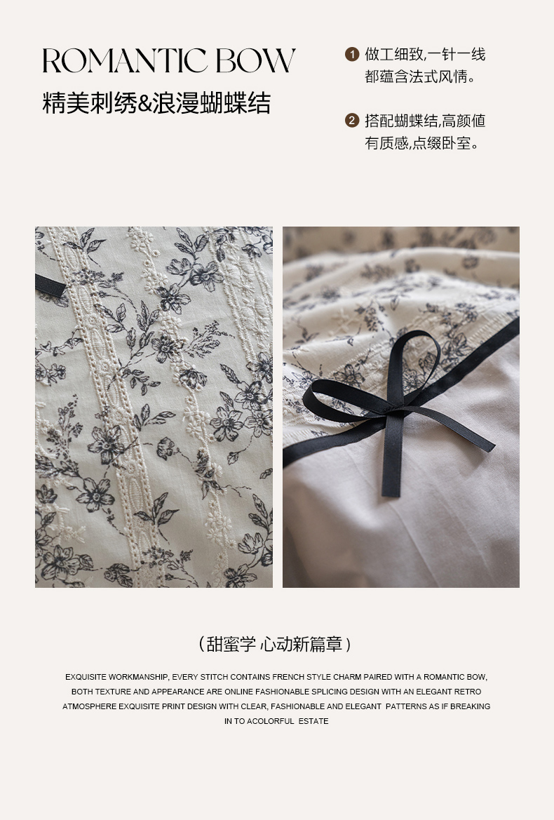 2024新款全棉轻法式复古蝴蝶结刺绣工艺款四件套 奈妃-高级灰
