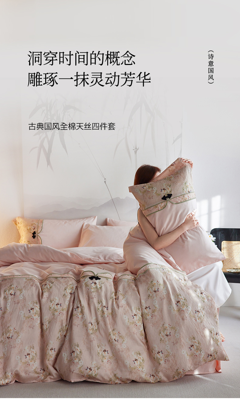 2024新款全新工艺古典国风全棉天丝四件套 虞美人