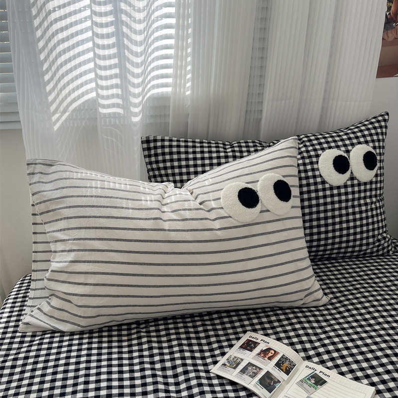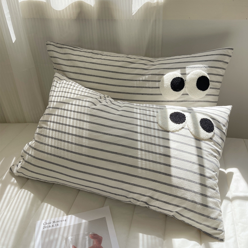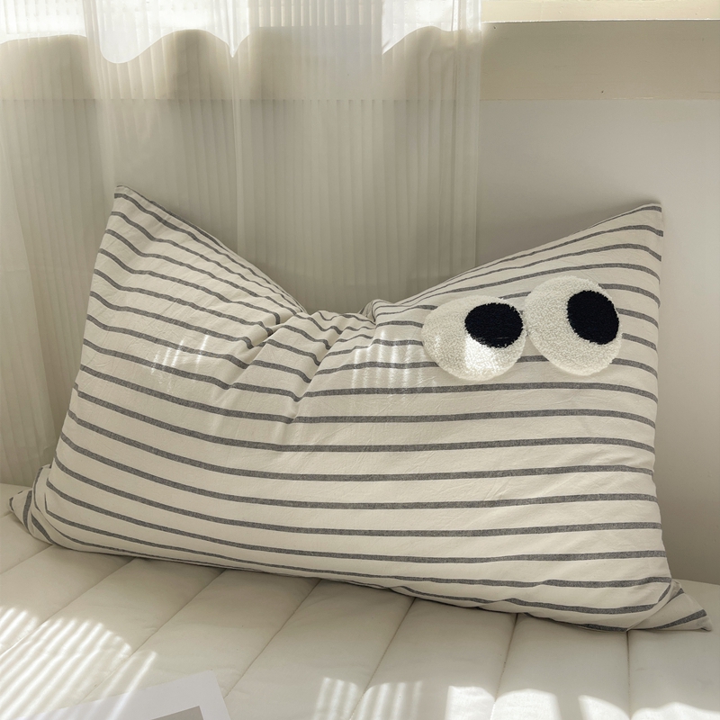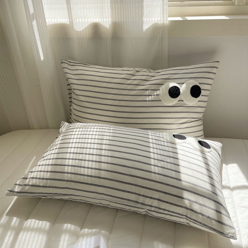 商品名称:丽涵家纺 2024新款色织水洗棉大眼毛巾绣-单品枕套 大眼黑白条
