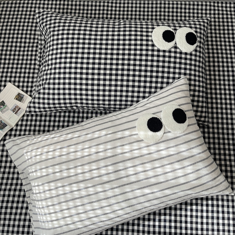 丽涵家纺 2024新款色织水洗棉大眼毛巾绣-单品枕套 大眼黑白条
