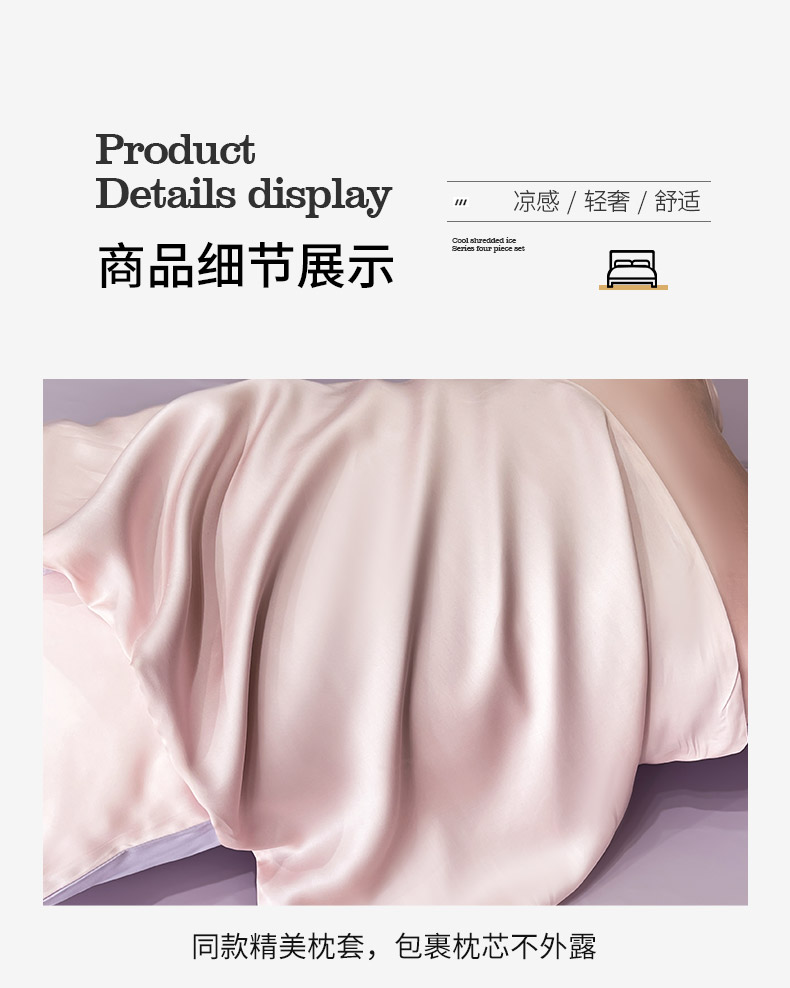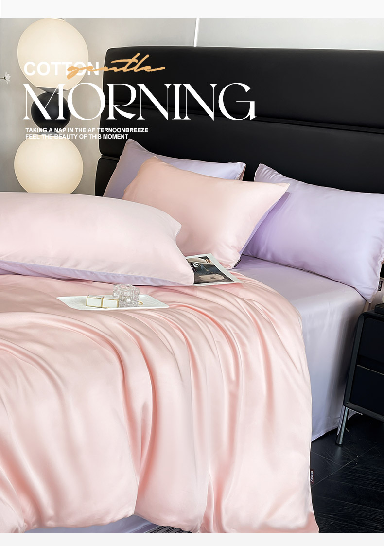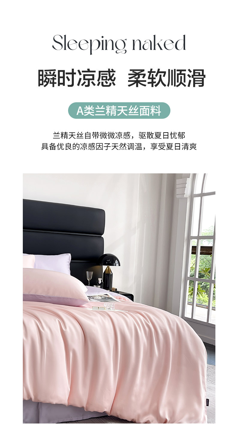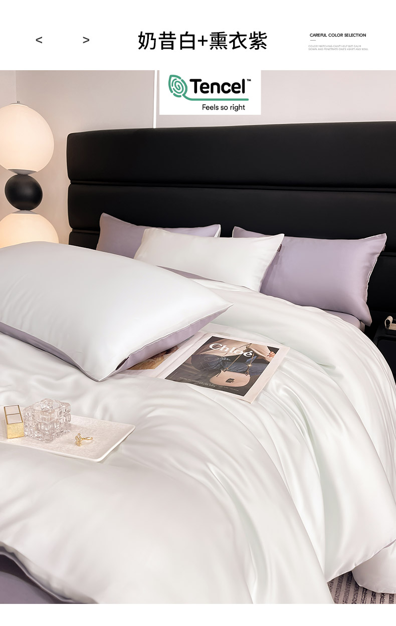 (总)【A类100支兰精天丝】夏季轻奢风真丝四件套拼色纯色简约凉感冰丝绸床上用品