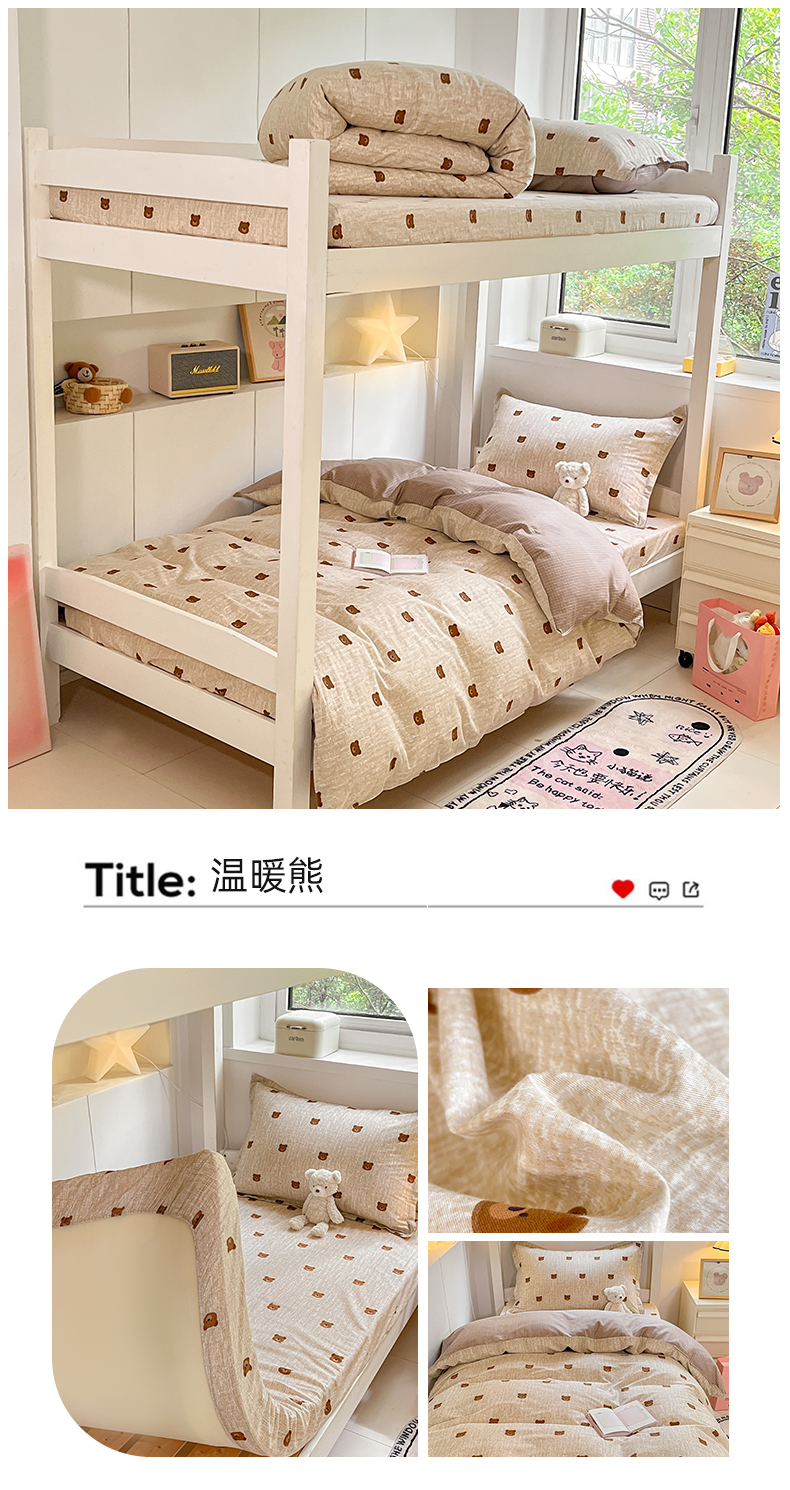 当前位置: 91家纺网 > 商品网购 > 床品套件 > 三件套 > 2024新款全棉印花三件套学生宿舍床三件套上下铺床单被套 温暖熊