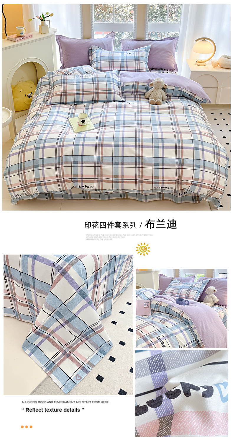 当前位置: 91家纺网 > 商品网购 > 床品套件 > 四件套 > 全棉普通四件套 > 铭成家纺 2024新款新疆棉喷气印花小清新系列四件套布兰迪