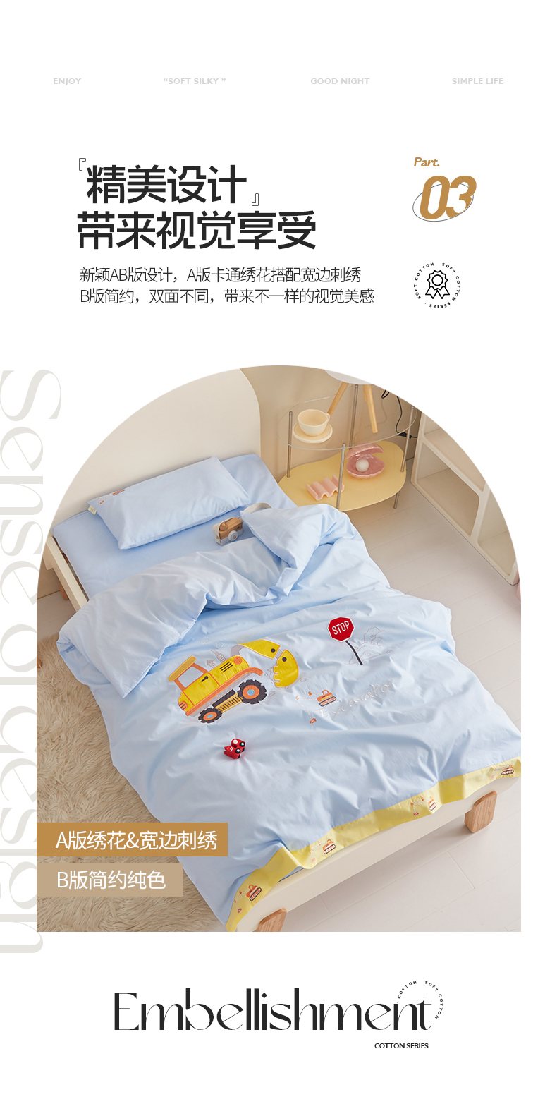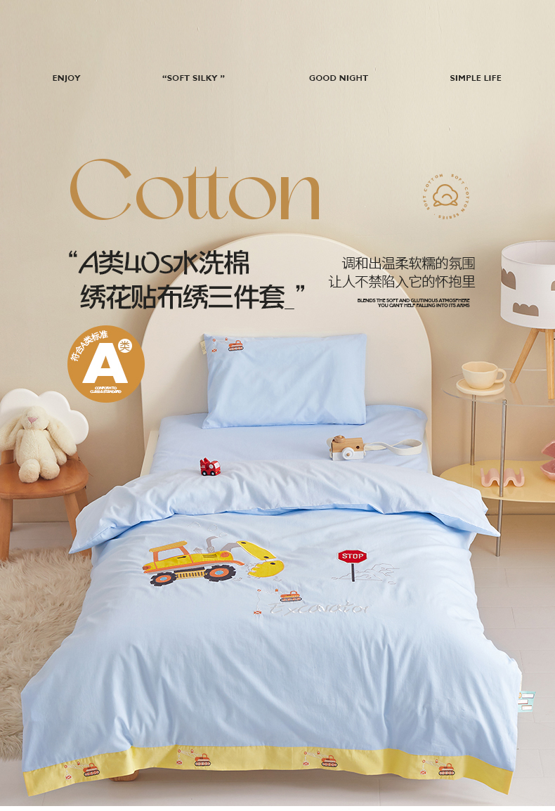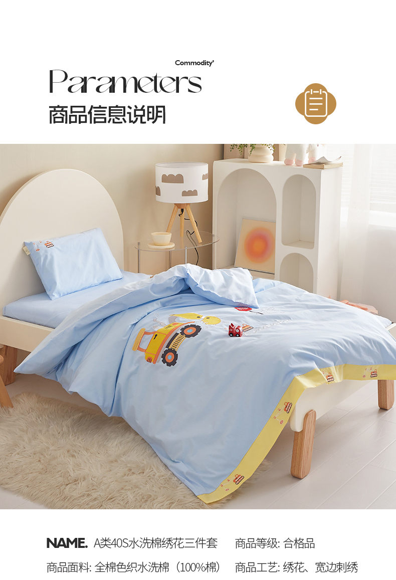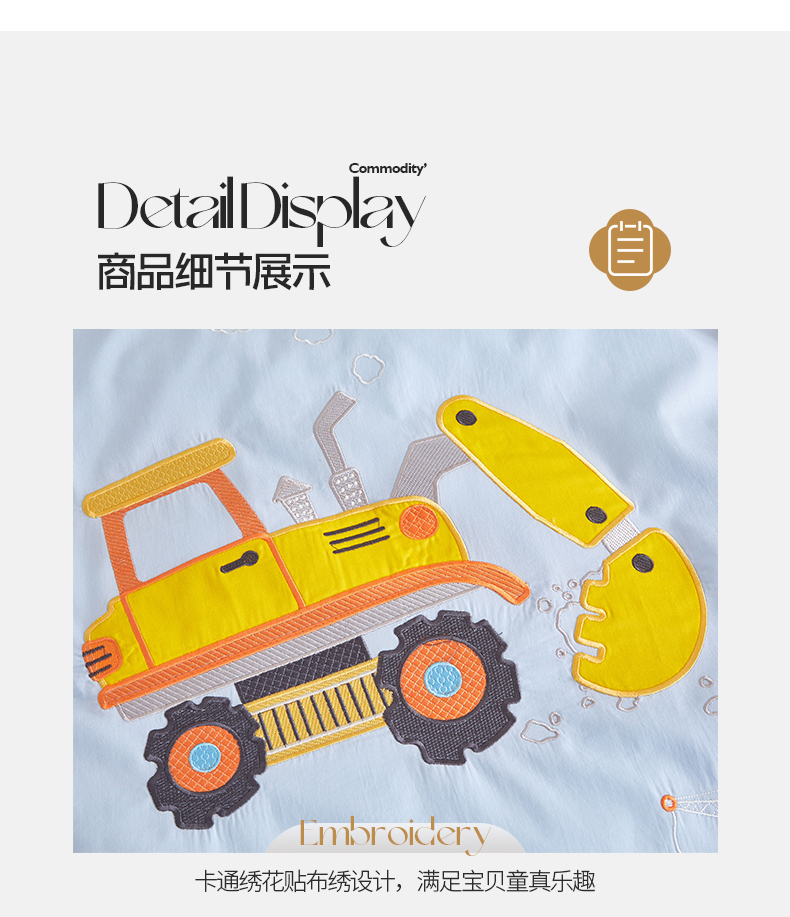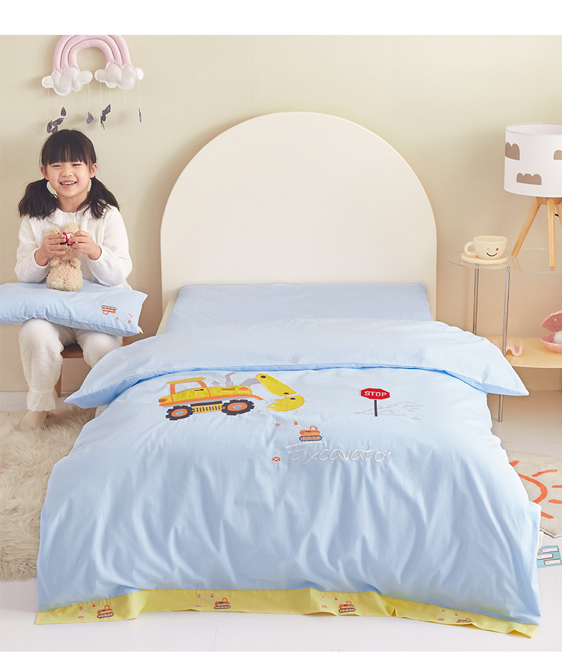 当前位置: 91家纺网 > 商品网购 > 床品套件 > 多件套 > 多件套 > 荷马之梦 40s水洗棉绣花带边多件套(心想) 可爱挖机