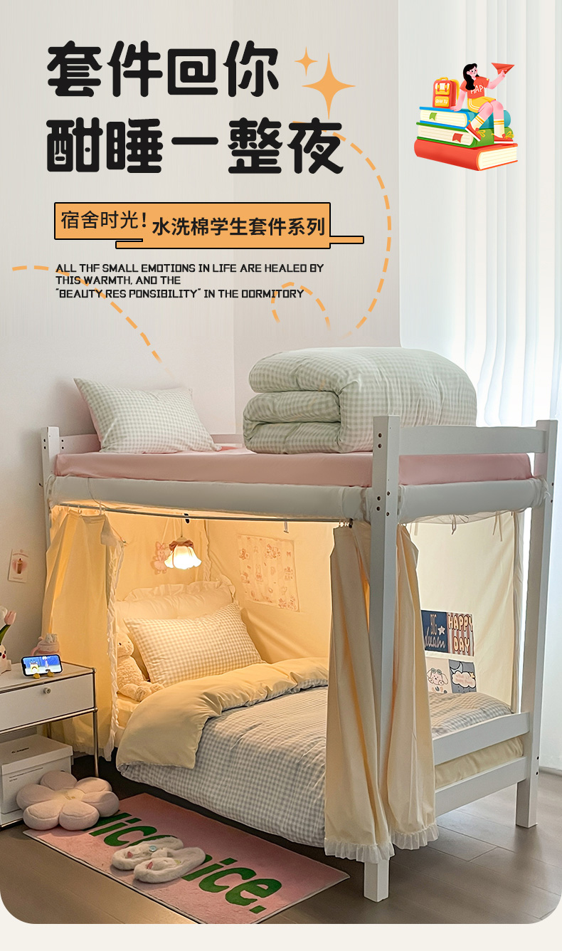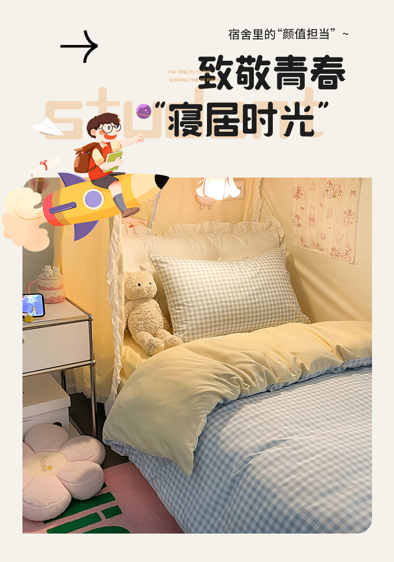 当前位置: 91家纺网 > 商品网购 > 床品套件 > 三件套 > 眠帛家居 2024新款A类学生三件套奶油风小清新毛巾绣暖心系列水洗棉床上用品四件套图2 暖心-治愈蓝格