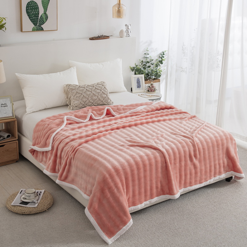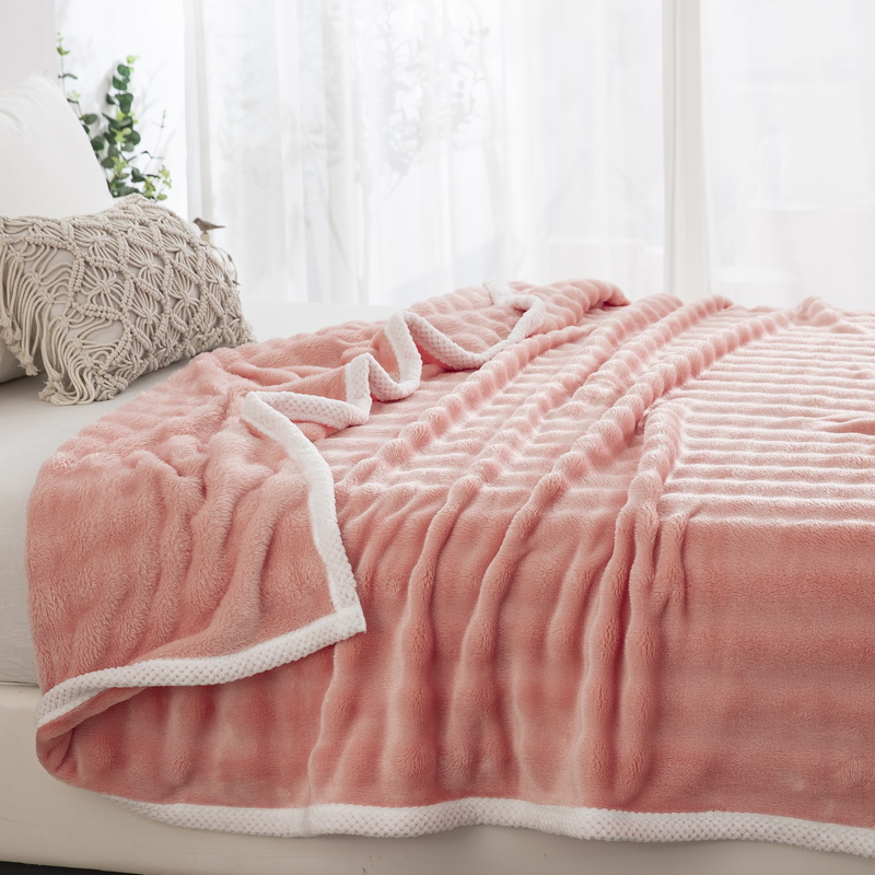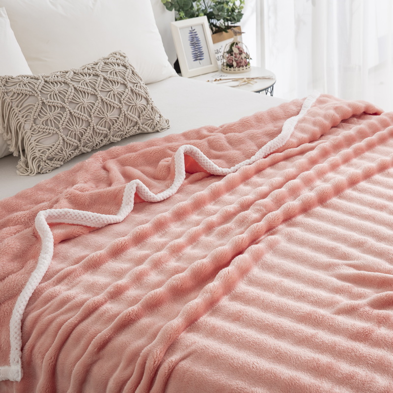 卉晨家纺 2024新款牛奶绒兔毛绒空调毯午睡毯泡泡毛毯 纤玉粉