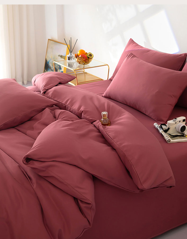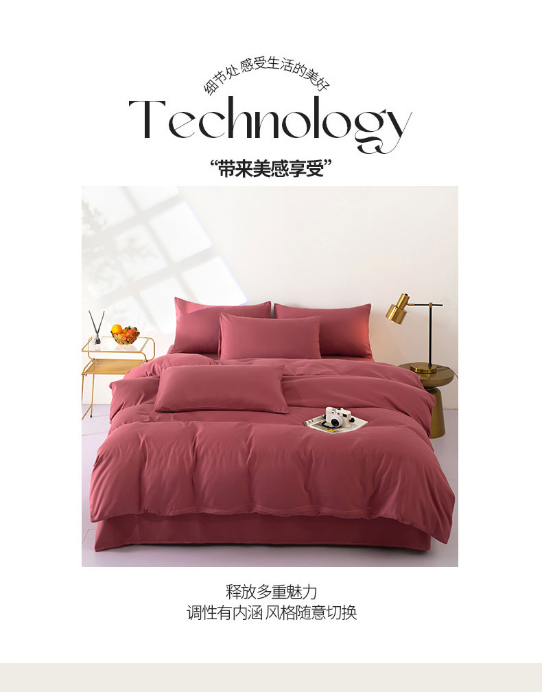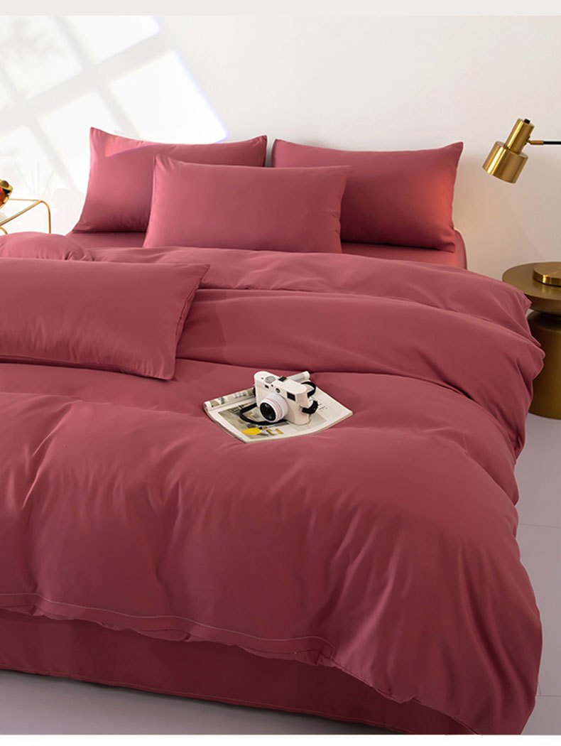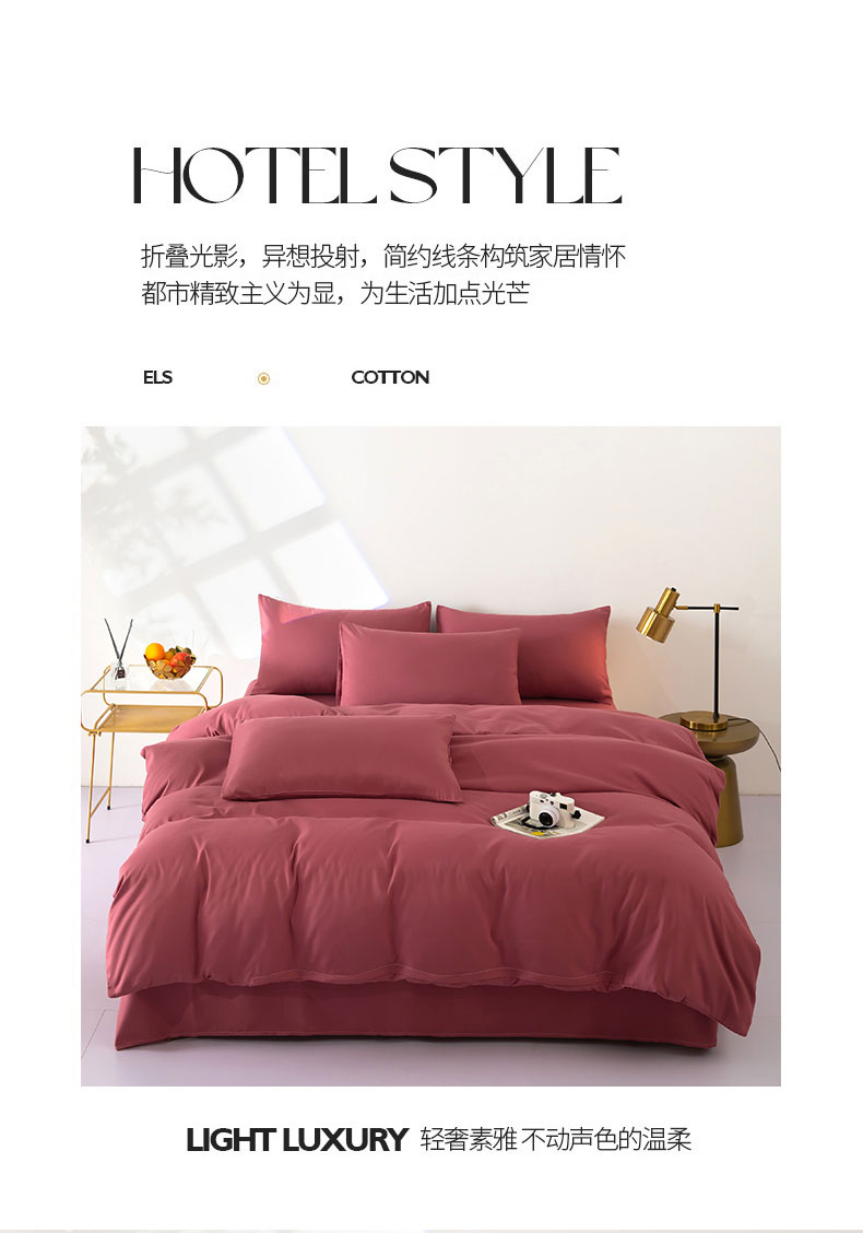 梦莱家纺 2024新款亲肤磨毛纯色拼色轻奢系列四件套 深红