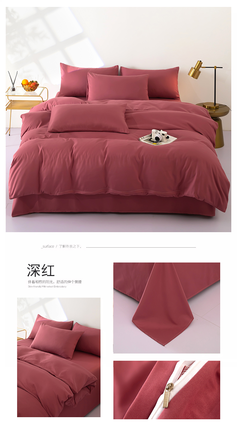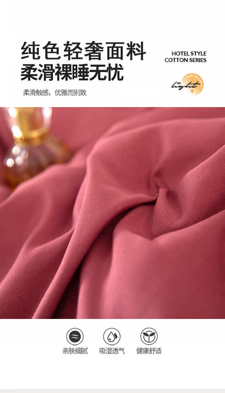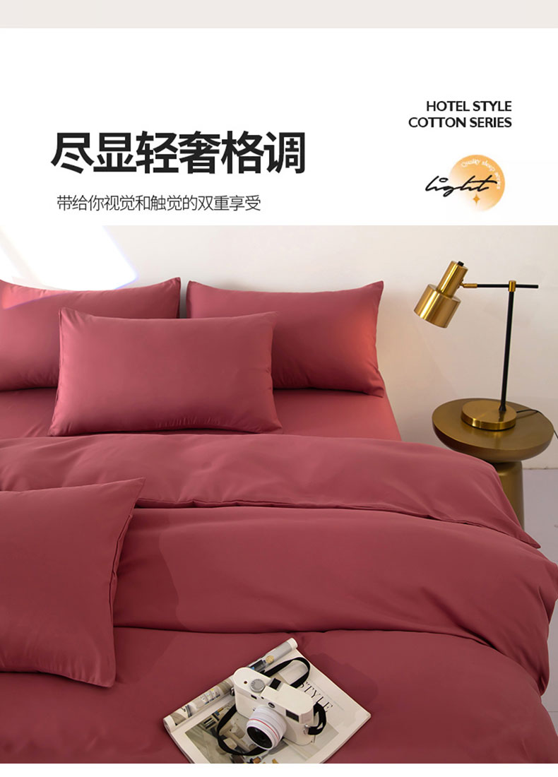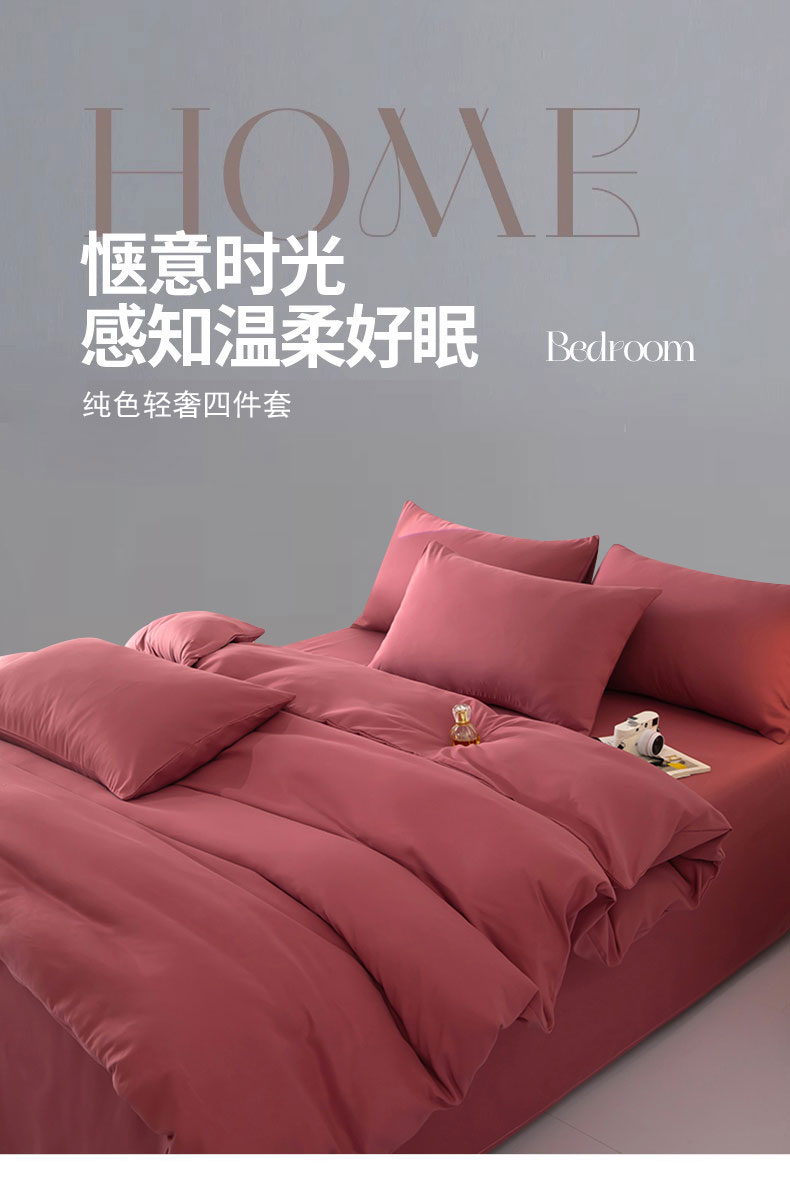 商品名称:梦莱家纺 2024新款亲肤磨毛纯色拼色轻奢系列四件套 深红