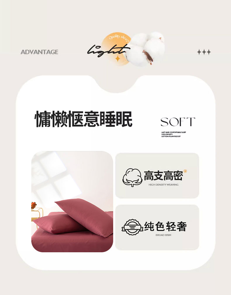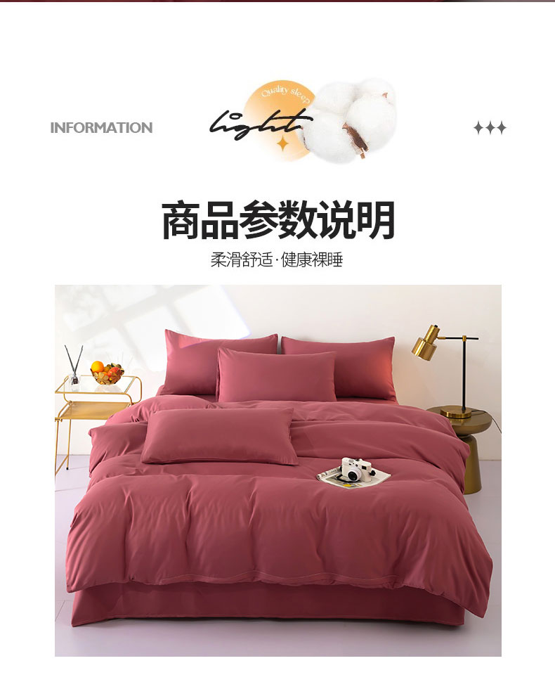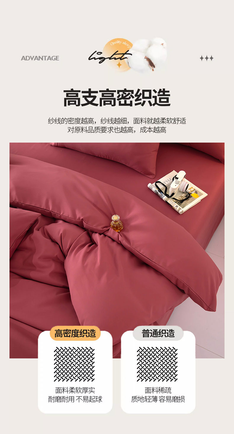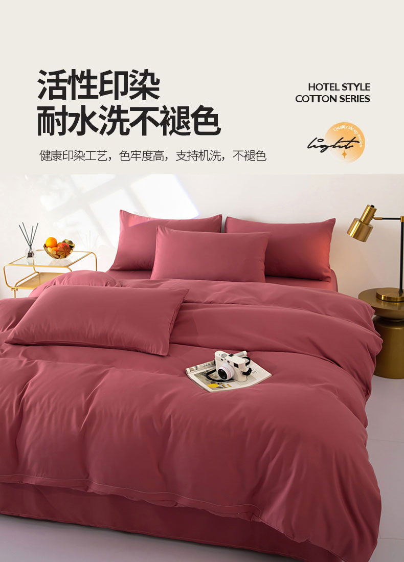 商品名称:梦莱家纺 2024新款亲肤磨毛纯色拼色轻奢系列四件套 深红