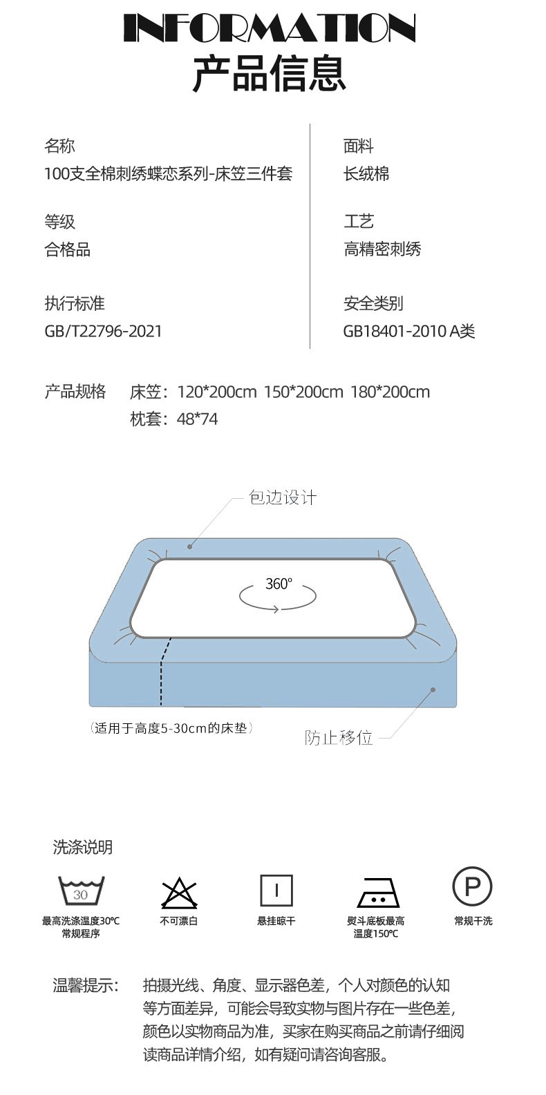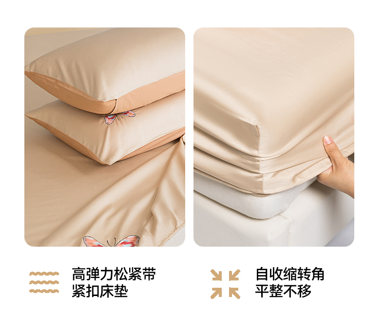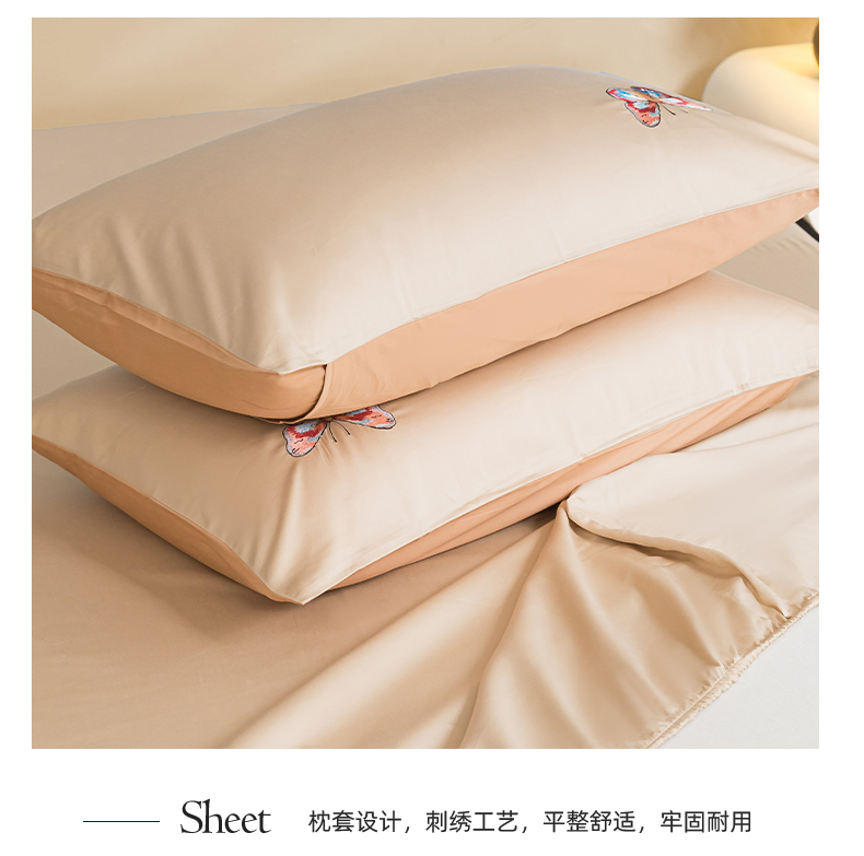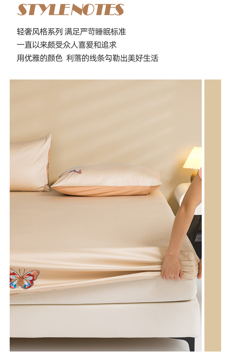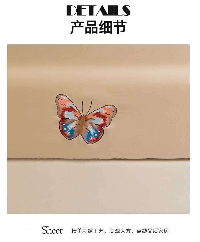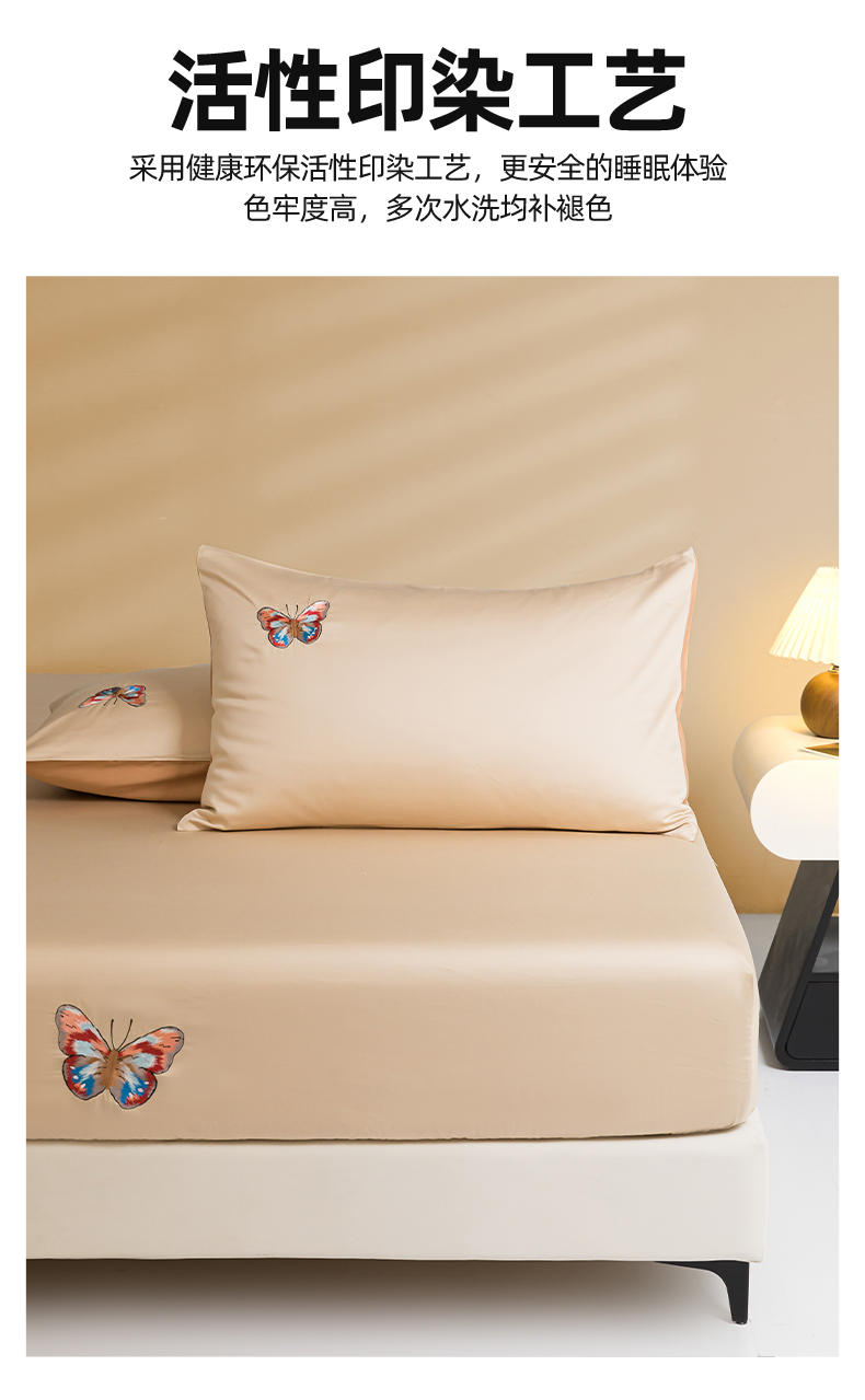 • 91家纺网 家纺一手货源 找家纺 蓝米卡夫 2024新款A类100支全棉刺绣蝶恋系列单床笠三件套 蝶恋100支-香槟金