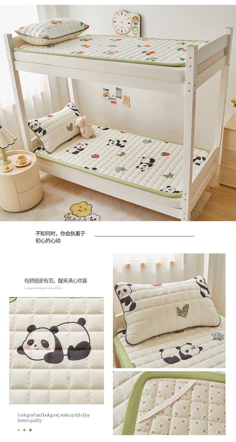 商品名称:花言狐语 2025新款水洗棉加厚夹棉防滑床褥子(印花系列)-学生单人床 熊猫