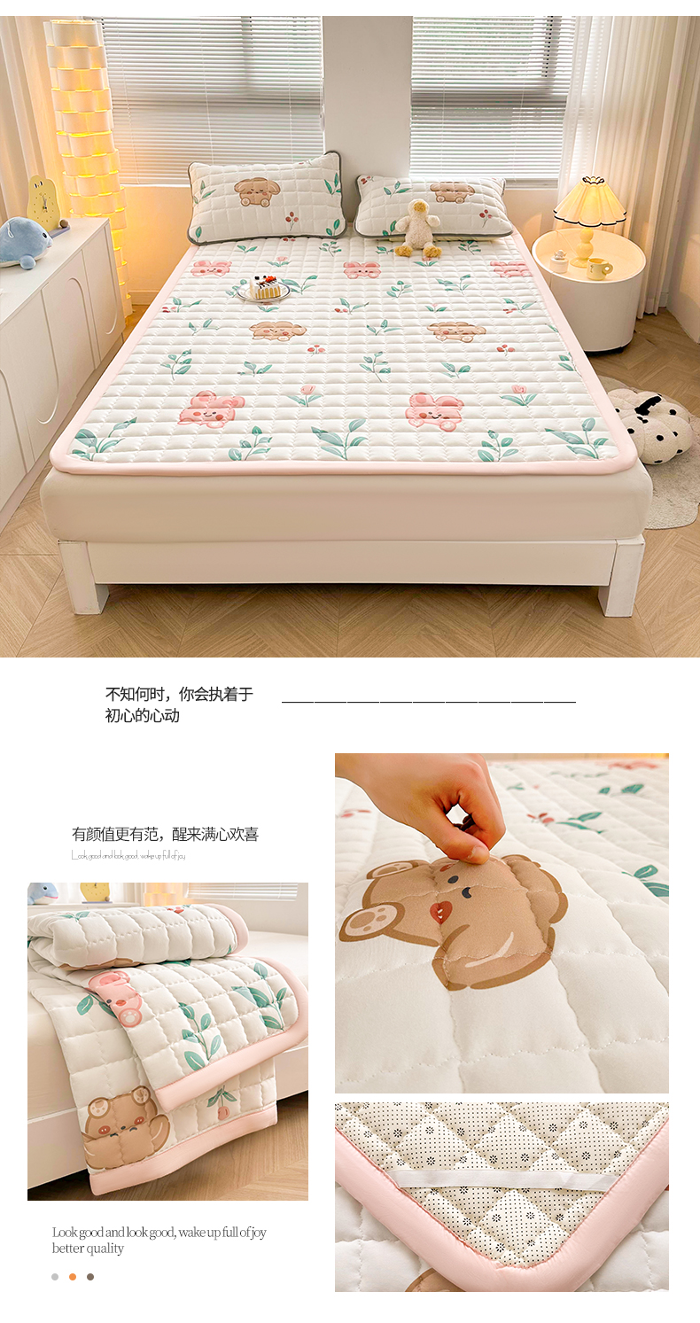 花言狐语 2025新款水洗棉加厚夹棉防滑床褥子(印花系列)-大床 可爱兔