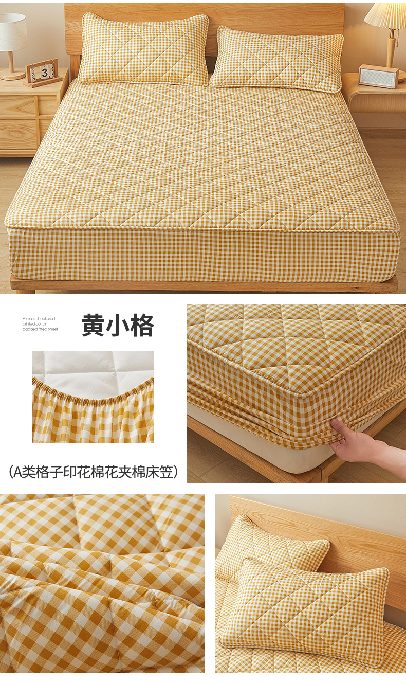 商品名称:多谷家纺 2024新款格子无印风系列棉花夹棉床笠 黄小格