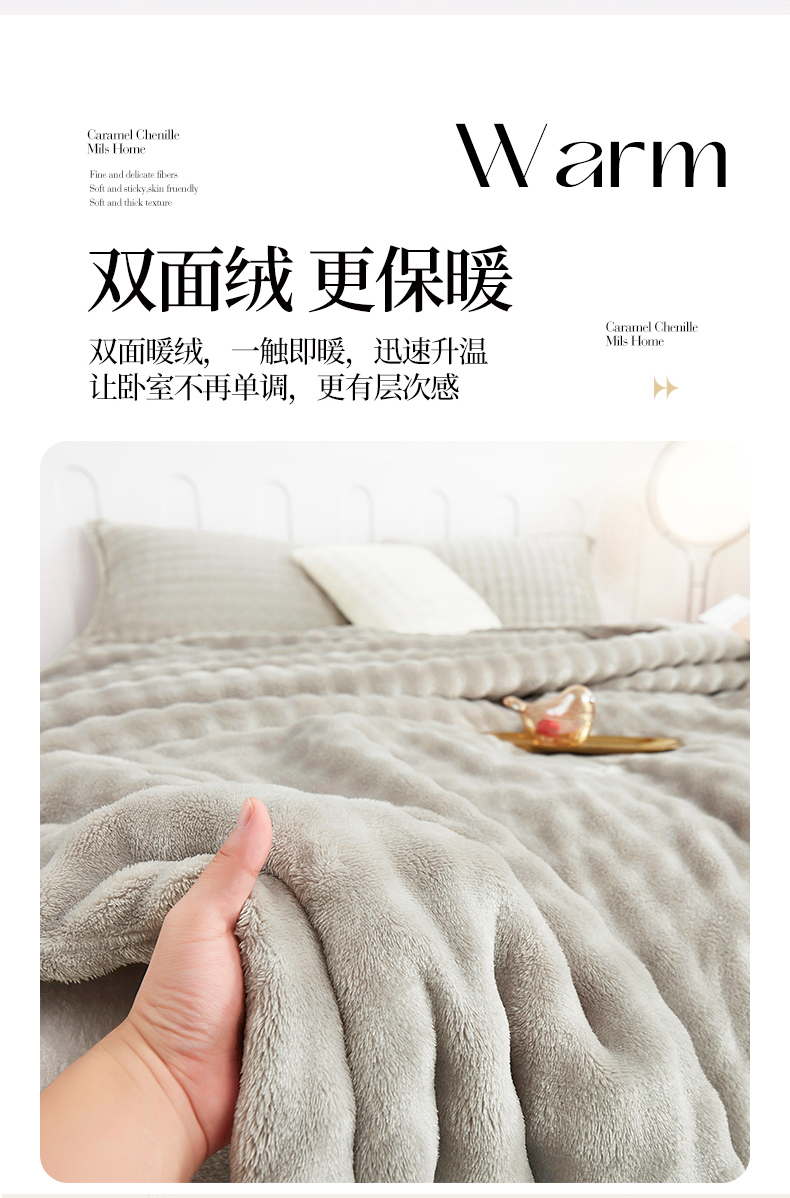 悦织湾家纺 2025新款布兰卡系列仿兔毛小泡泡兔纯色牛奶绒毛毯 布兰卡-银灰