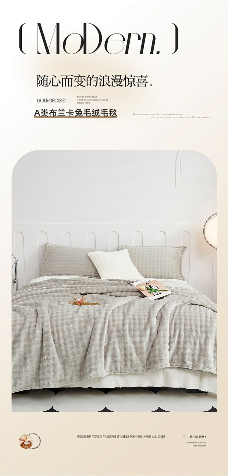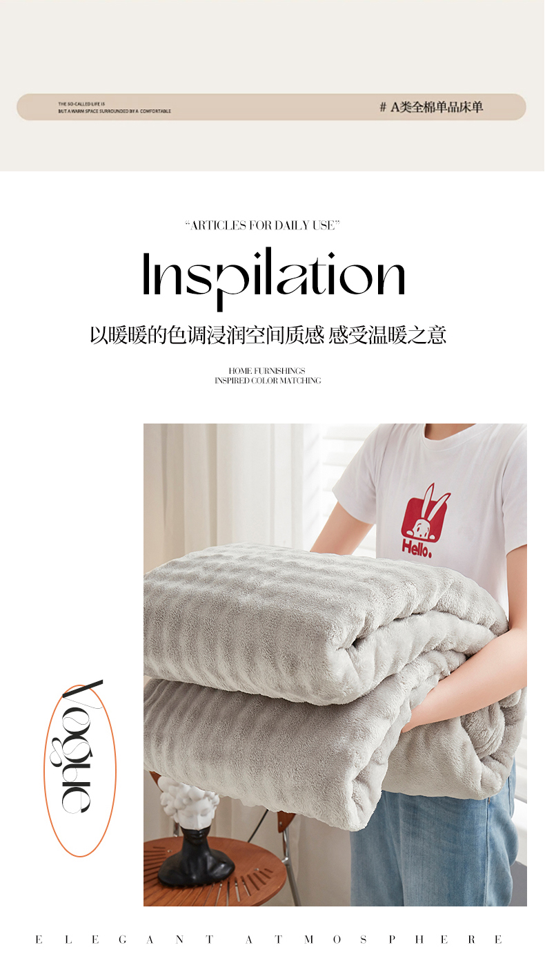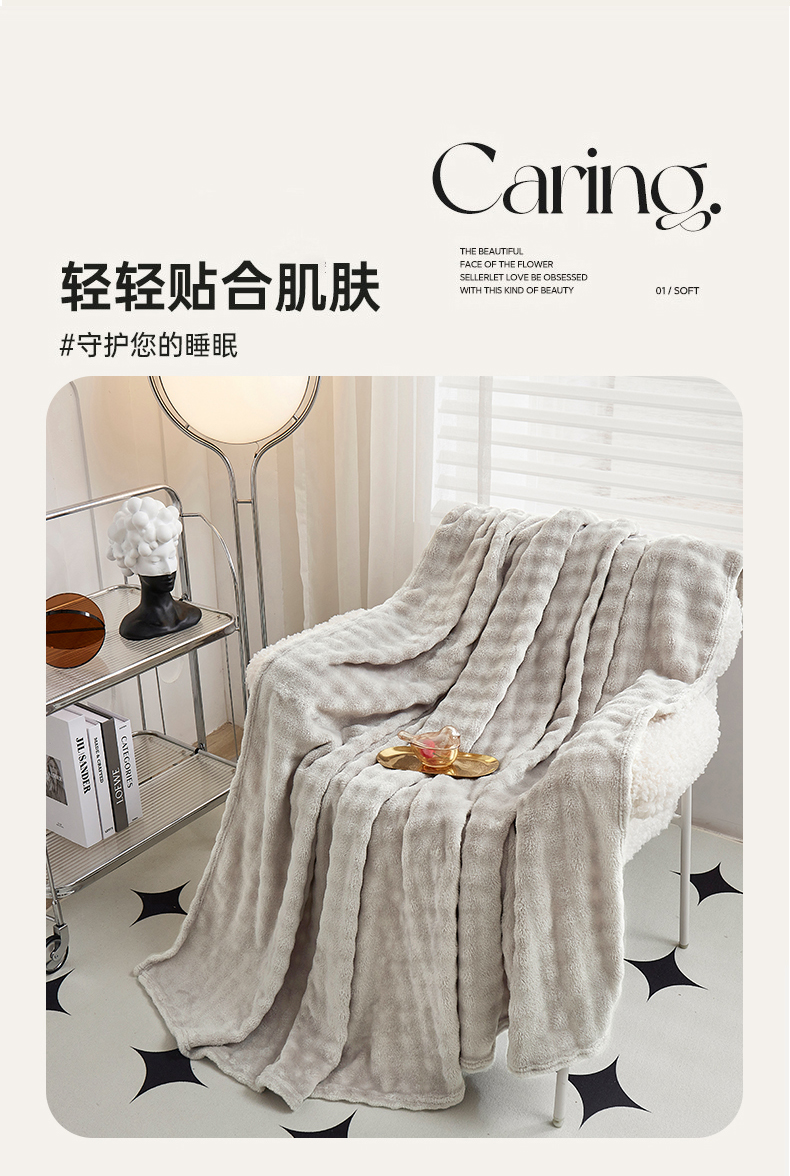 商品名称:悦织湾家纺 2025新款布兰卡系列仿兔毛小泡泡兔纯色牛奶绒毛毯 布兰卡-银灰