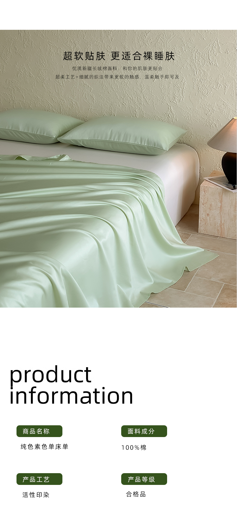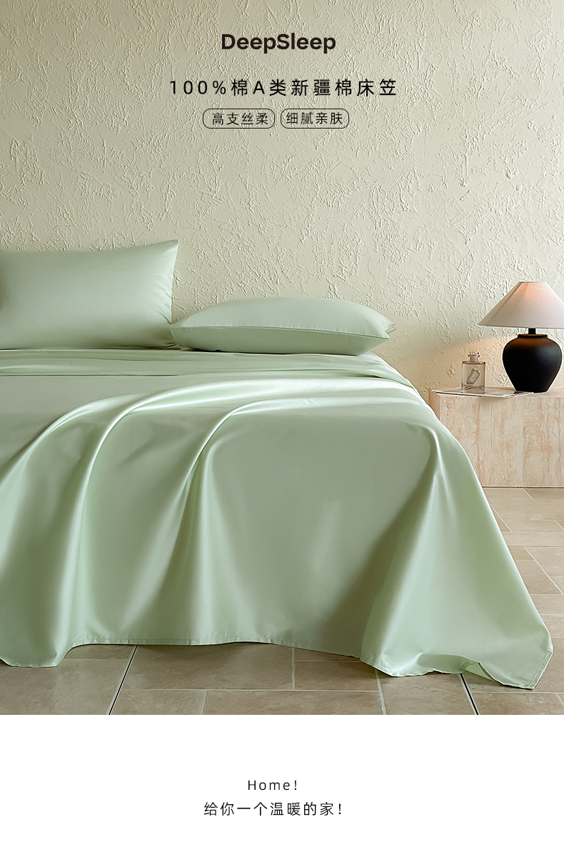 床上用品 > 床单 > Mr.pig猪先生水洗棉 2024新品 A类全棉50S贡缎长绒棉单床笠床罩纯棉床垫保护套学生宿舍三件套床上用品 茶香绿