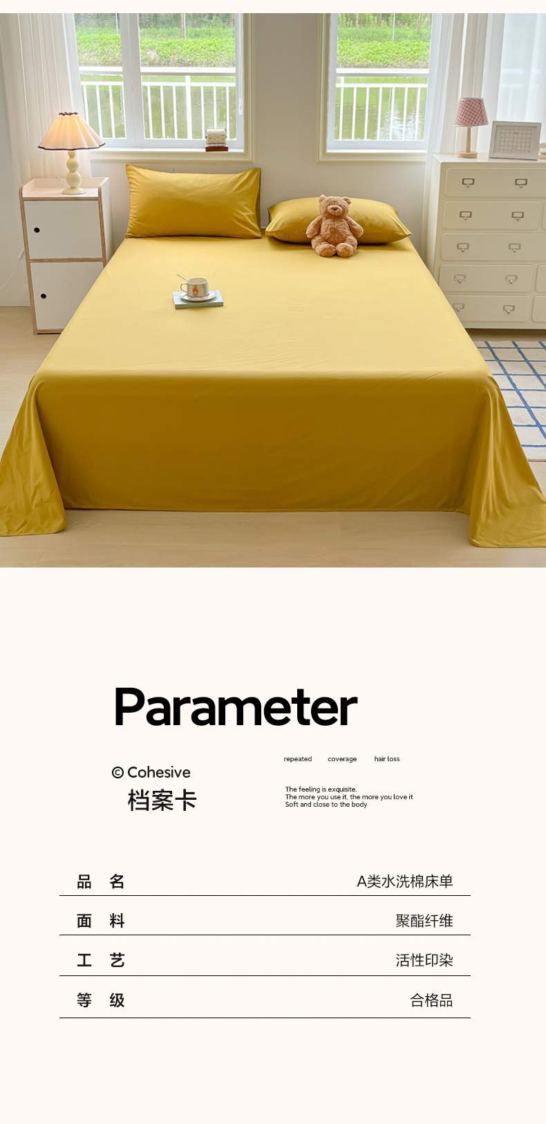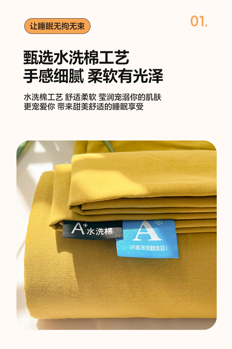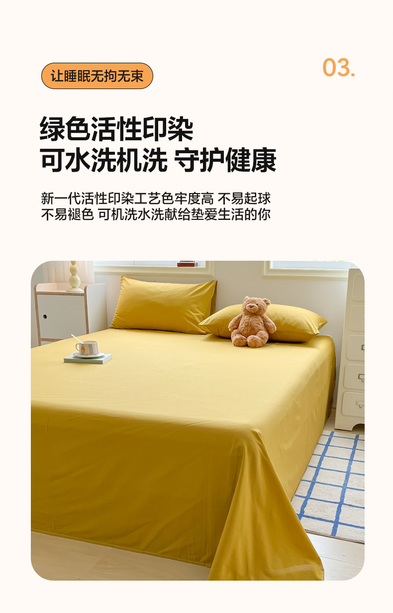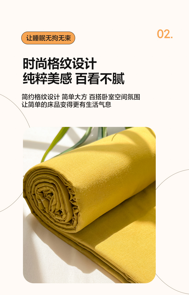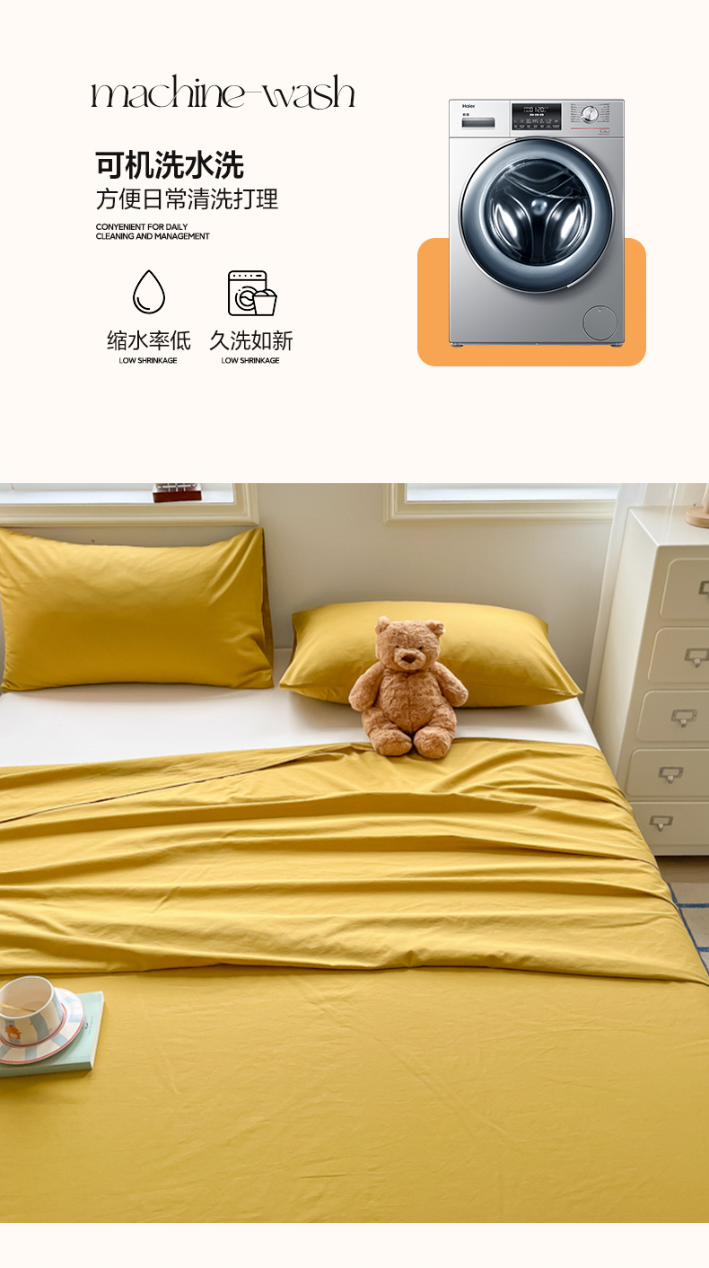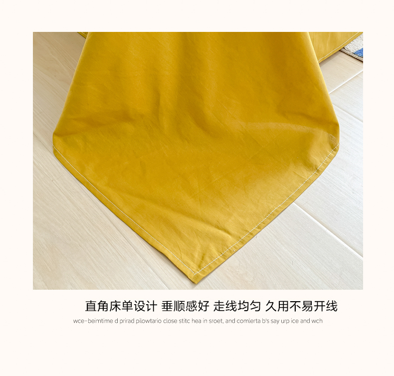 商品名称:韩巢家纺 2024新款简约格子纯色A类水洗棉床单枕套三件套 A类黄色-床单