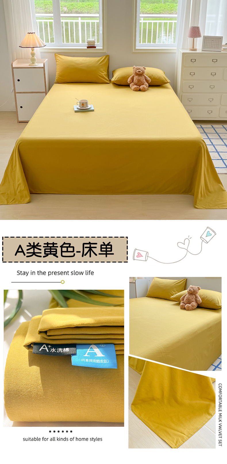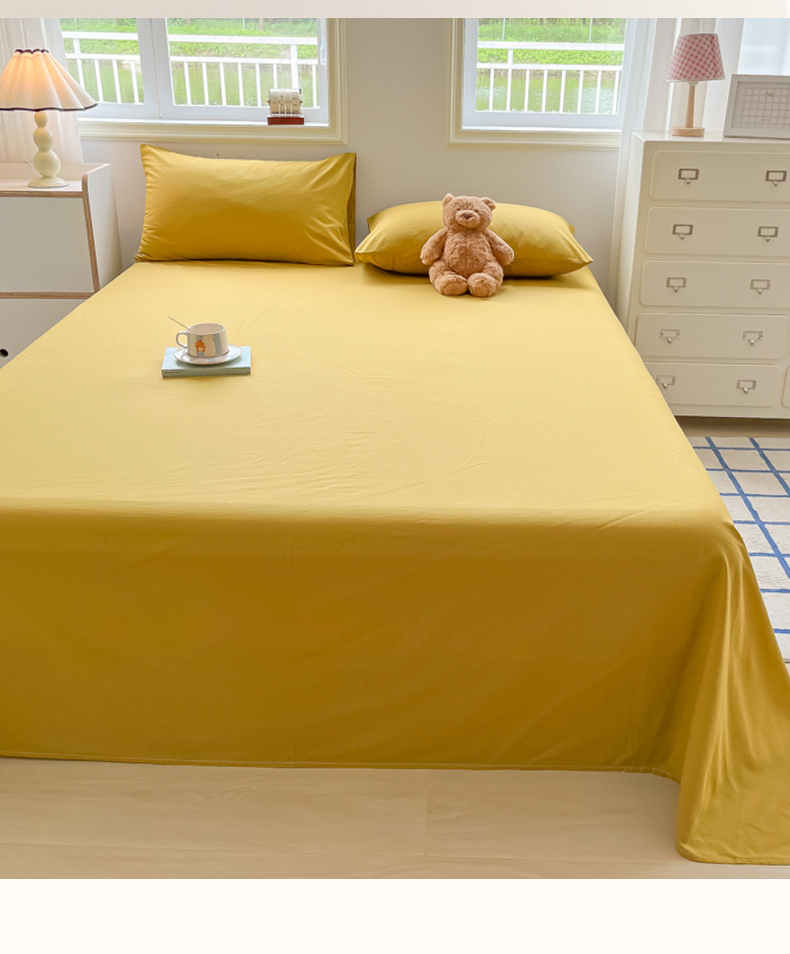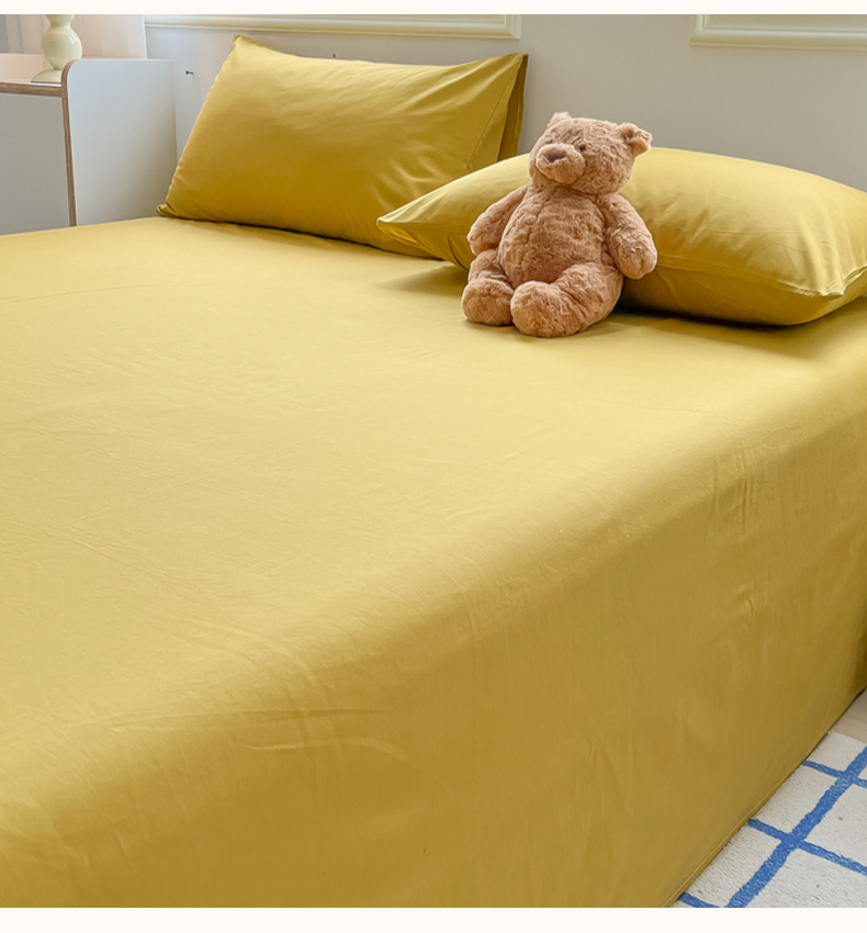 韩巢家纺 2024新款简约格子纯色A类水洗棉床单枕套三件套 A类黄色-床单