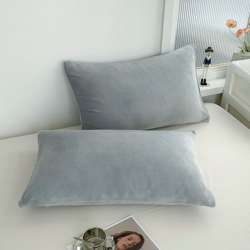 丽涵家纺 2024秋冬新品200克纯色全工艺牛奶绒单品枕套 鸭蛋灰