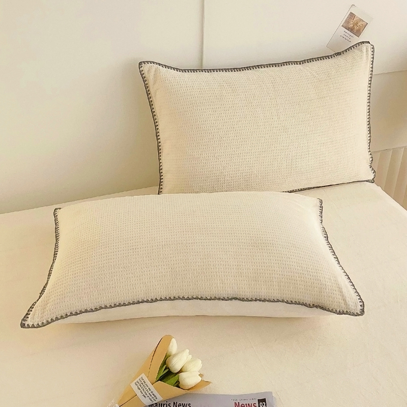 商品名称:丽涵家纺 2024秋冬新品牛奶绒华夫格雕花单品枕套 华夫格-香草白