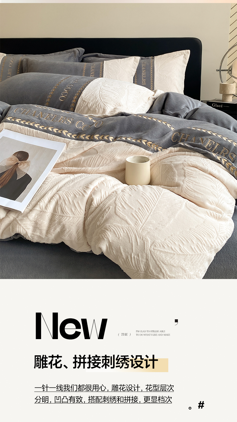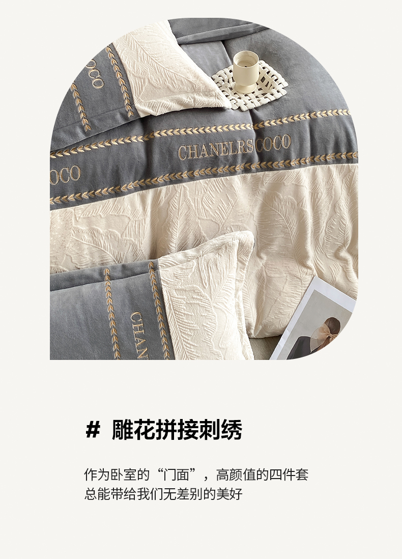 (总)宇航家纺 2025新款法式拼接绣花兔兔绒牛奶绒四件套,清风花影-墨灰,清风花影-咖啡,暗夜玫瑰,蝴蝶翩翩-浅咖,蝴蝶翩翩-深咖,墨花疏影-粉玉,叶澜听雨-灰紫,叶澜听雨-卡其