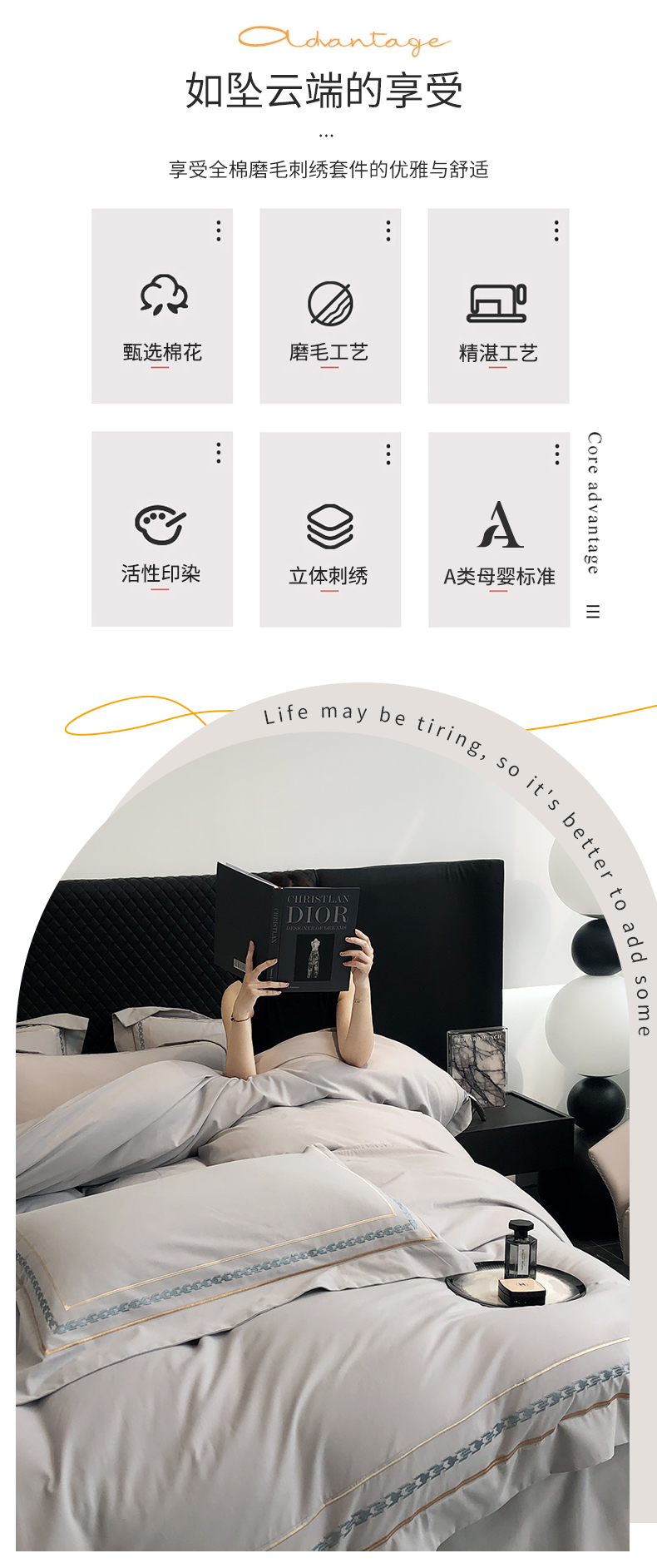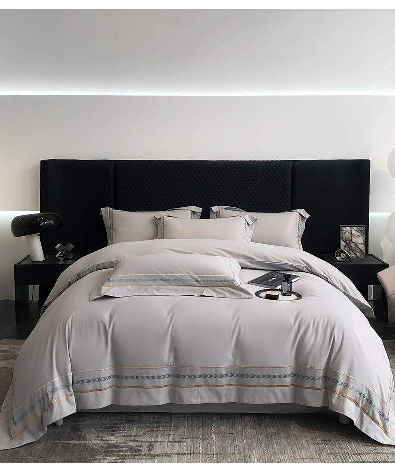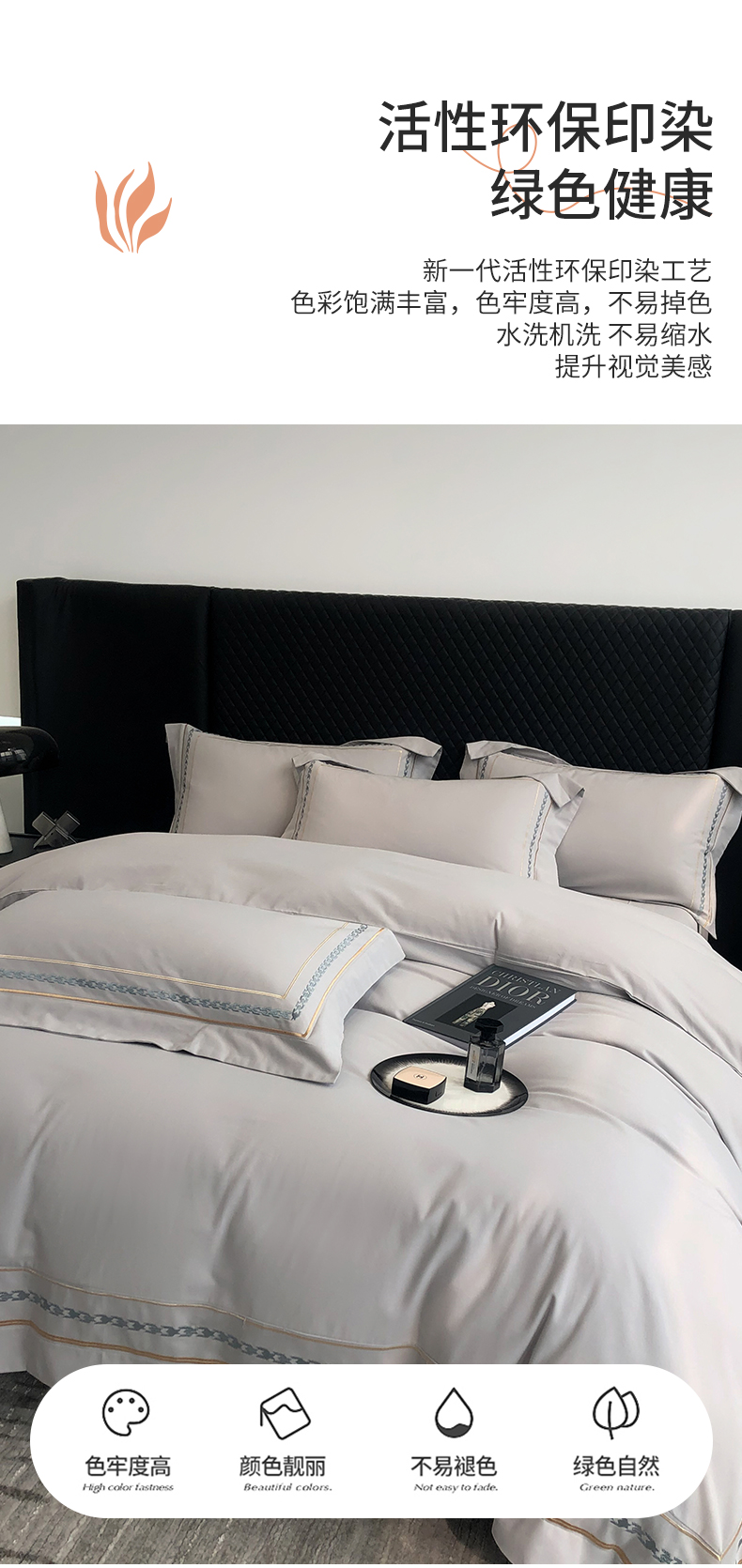商品名称:家居1号家纺 2024新款加厚全棉磨毛宽边刺绣拼角四件套-维多利 维多利 绅士灰