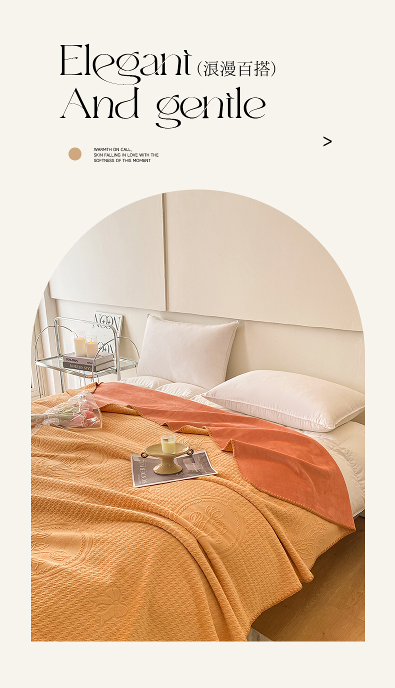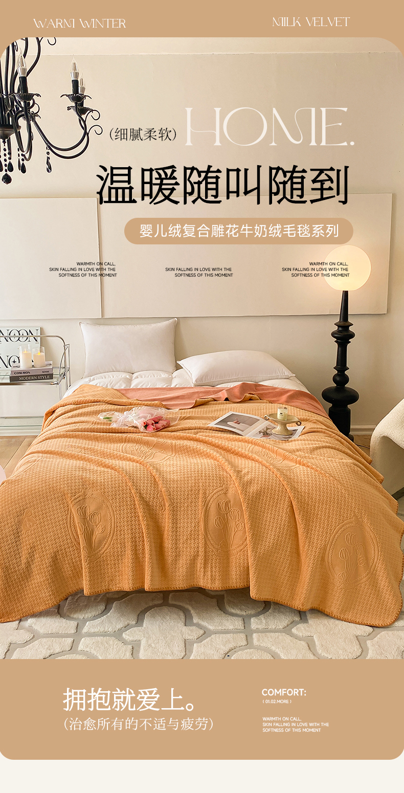 商品名称:胜权家纺 2024秋冬新款加厚双层婴儿绒复合雕花牛奶绒多功能毛毯盖毯空调毯子 托斯卡纳黄