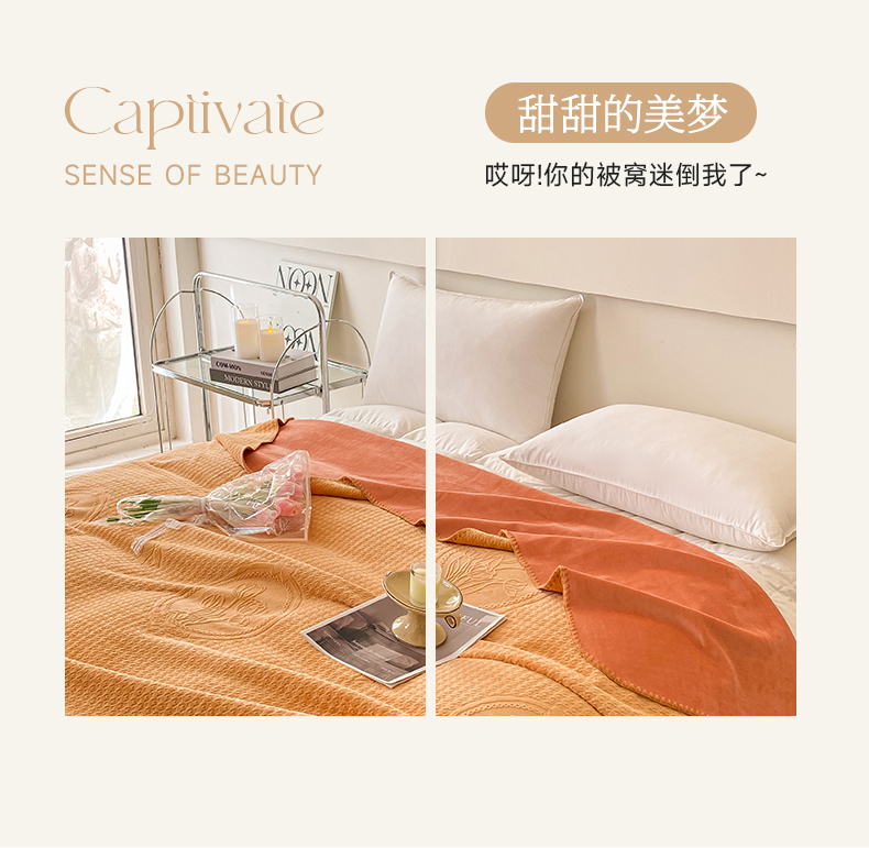 胜权家纺 2024秋冬新款加厚双层婴儿绒复合雕花牛奶绒多功能毛毯盖毯空调毯子 托斯卡纳黄