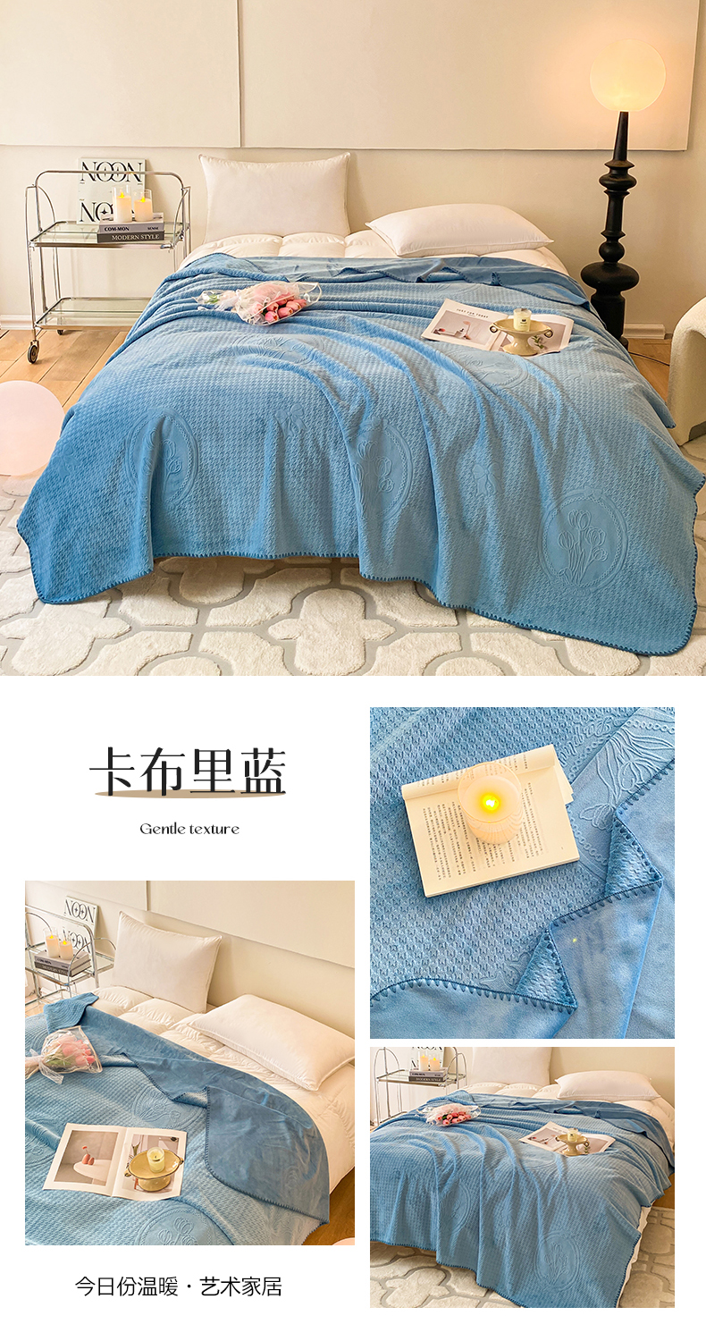 (总)胜权家纺 2025秋冬新款A类全消光高克重5D雕花牛奶绒仙女风夹棉床盖单品系列,梦安娜-湖蓝,梦安娜-靓紫,梦安娜-嫩粉,梦安娜-浅米