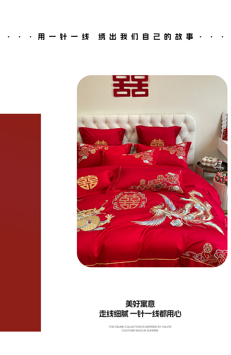 (总)欧乐蒂 2025新款全棉刺绣婚庆四件套,佳偶天成,龙凤和美,龙姿凤彩,玫瑰恋人,倾城之恋,双囍临门,甜蜜爱情,囍结良缘