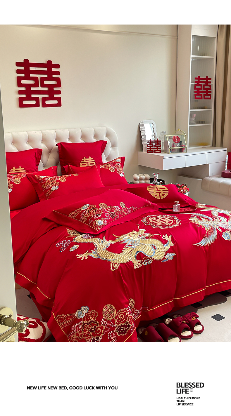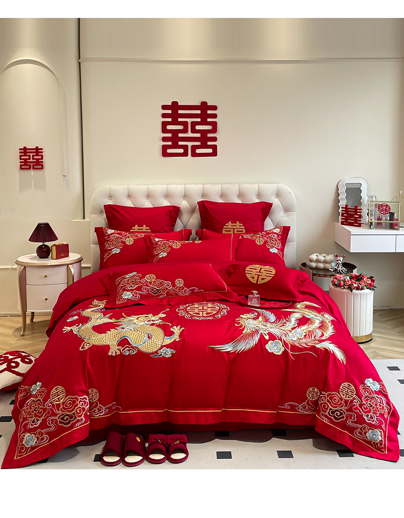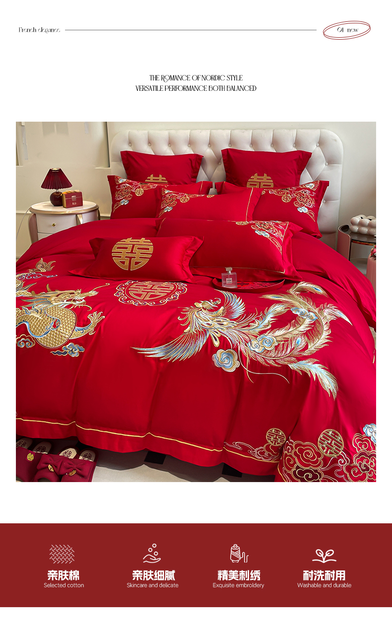 欧乐蒂 2025新款亲肤棉婚庆刺绣四件套系列 龙飞凤舞
