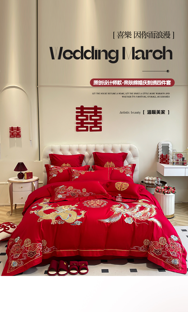 (总)欧乐蒂 2025新款设计师原创亲肤棉婚庆四件套,云喜东方,双喜临门,喜乐,喜事连连,爱恋,玫瑰爱恋,花开富贵,金枝玉叶,锦绣佳缘,龙姿风采