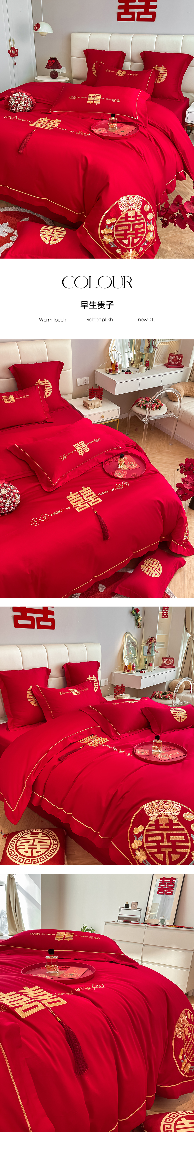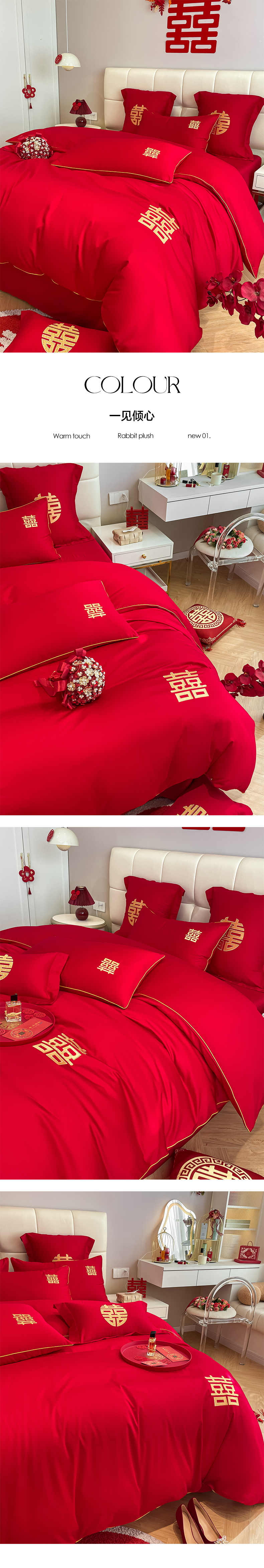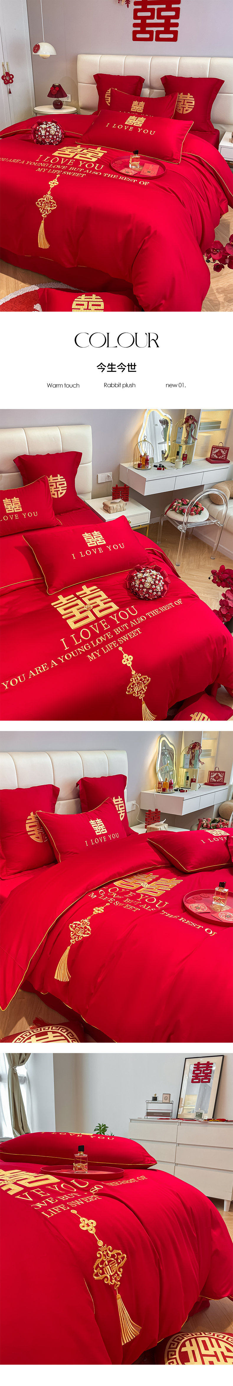 (总)欧乐蒂 2025新款婚庆款牛奶绒刺绣系列四件套-爱相随,爱相随-喜红,爱相随-金