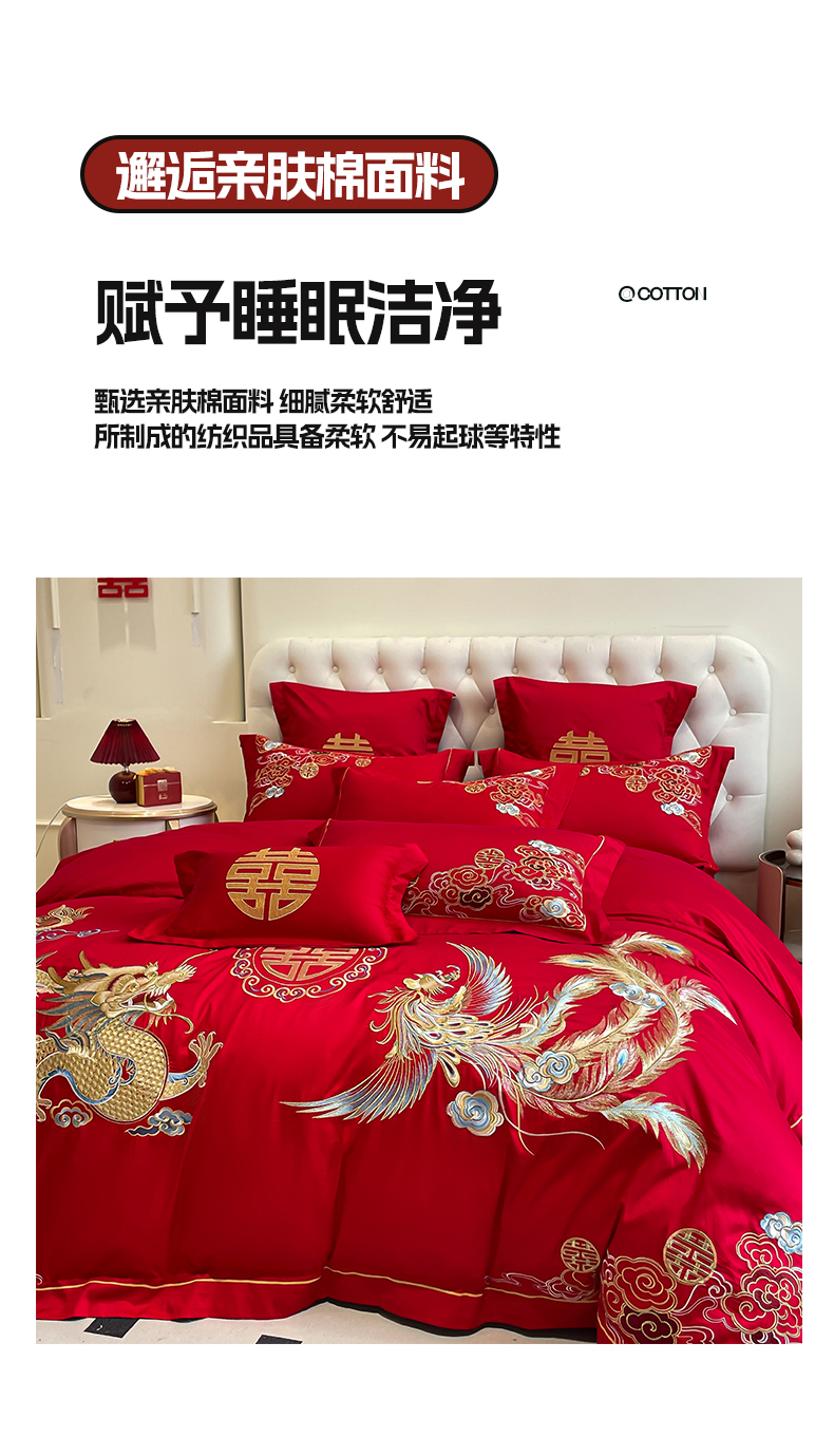 商品名称:欧乐蒂 2025新款亲肤棉婚庆刺绣四件套系列 龙飞凤舞