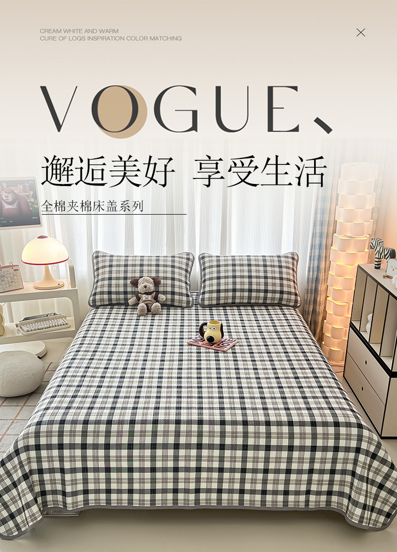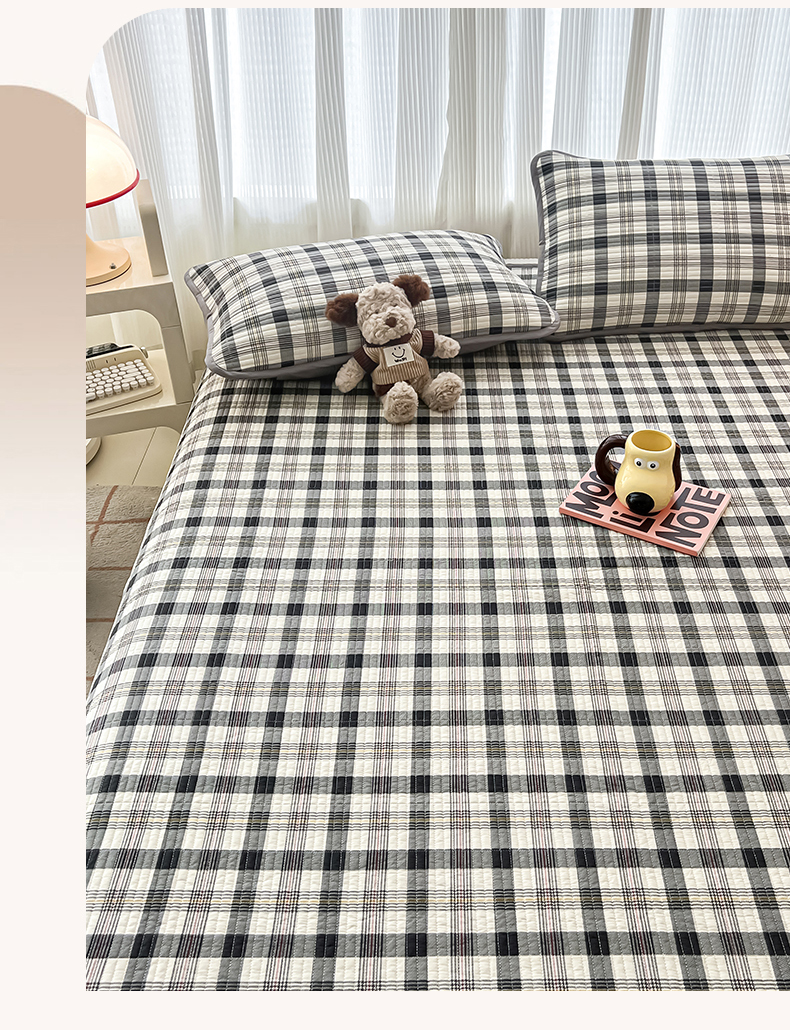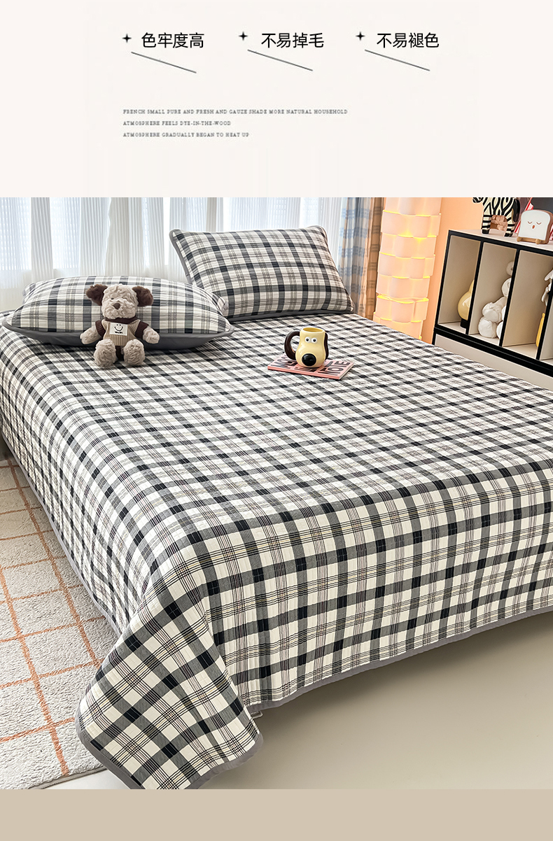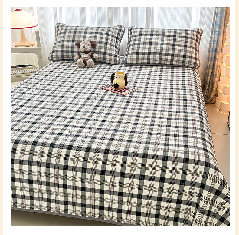 茉夕家纺 2024新款跑量款纯棉单面棉高温水洗床盖 黑白格